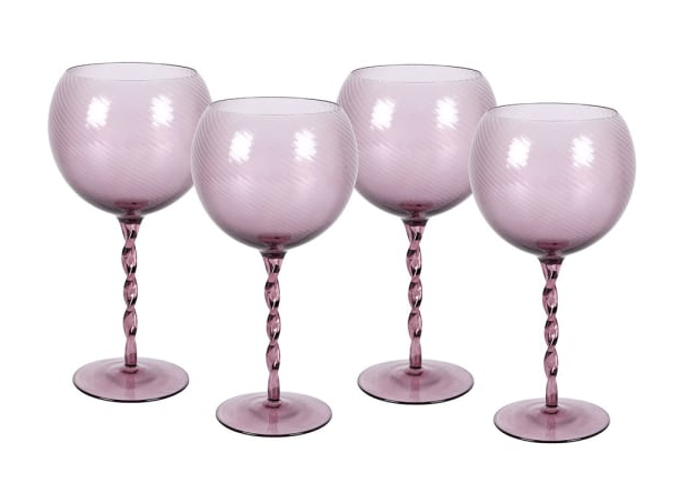 Raise a glass to stylish entertaining with this striking set of four amethyst twist gin glasses. Featuring beautifully curved bowls and eye-catching twisted stems in a rich amethyst hue, these glasses transform every gin & tonic (or favourite cocktail) into a moment worth savouring.