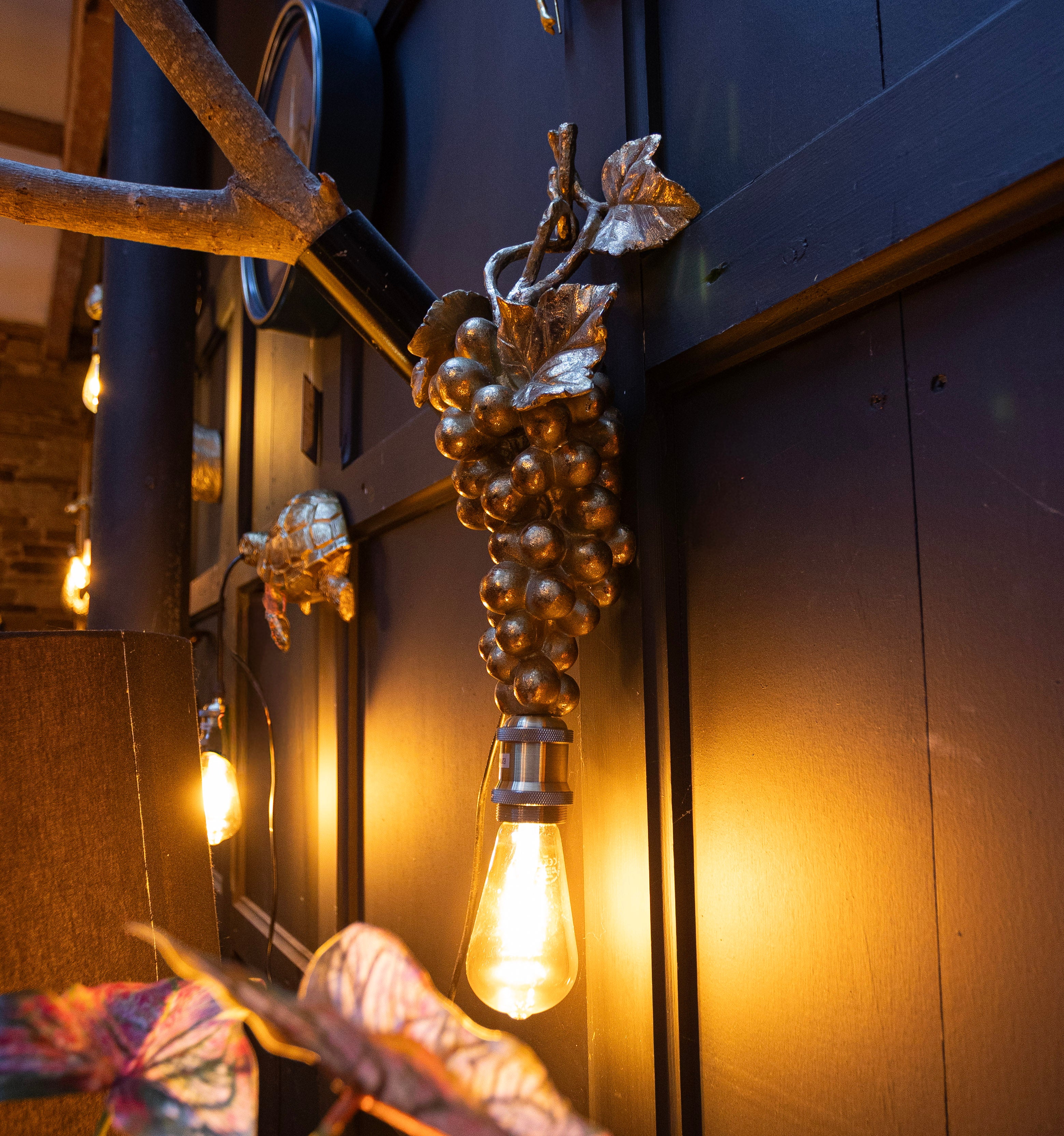 Playful, eye-catching, and full of character, the Antique Gold Grape Vine Wall Lamp is designed to spark curiosity and compliments. With its winding vine, sculpted leaves, and grape clusters finished in warm antique gold, this lamp feels like a piece of art climbing your wall.