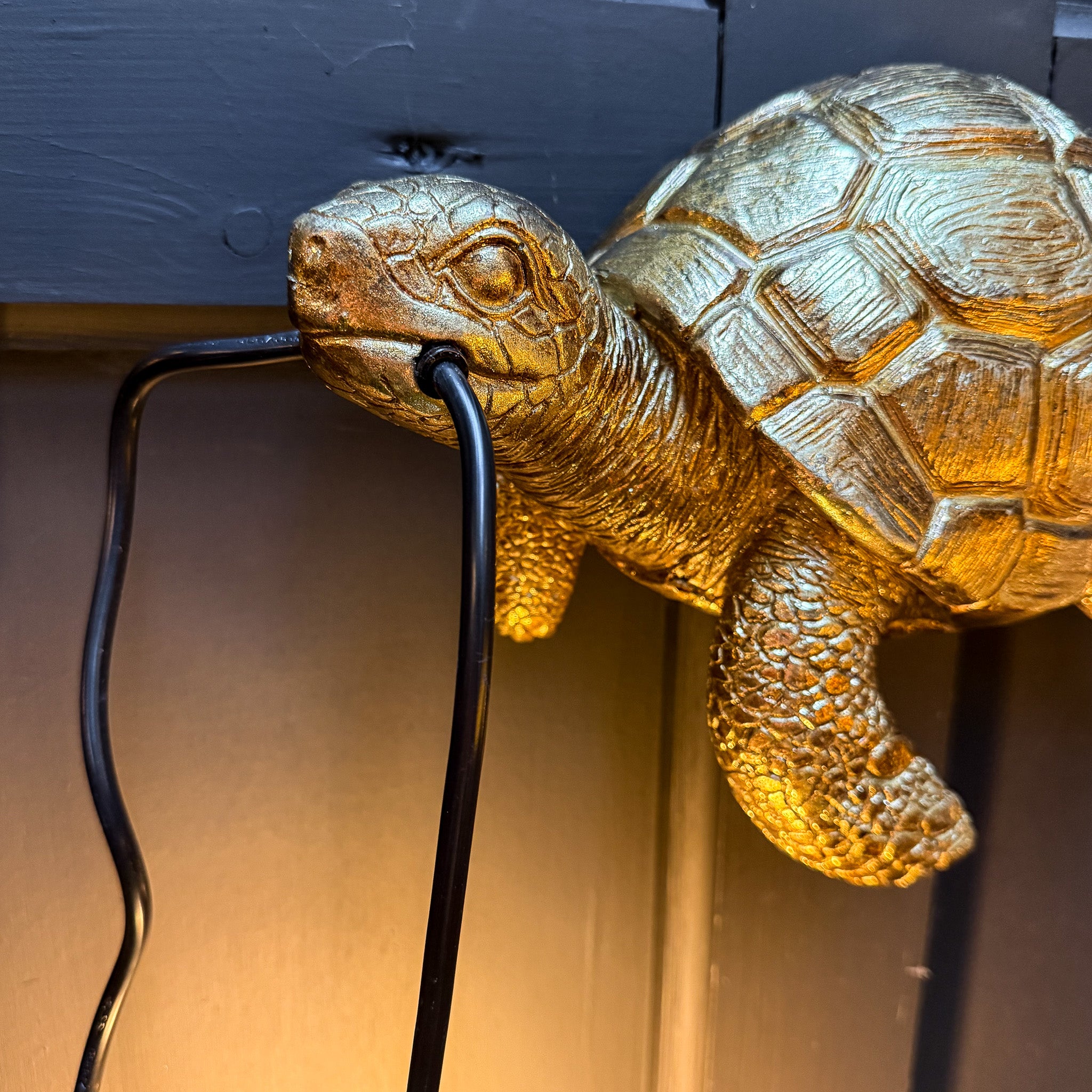Add character and warm ambient lighting to your interior with the Antique Gold Turtle Wall Lamp. Featuring a beautifully detailed turtle silhouette finished in rich antique gold, this wall-mounted lamp brings a playful yet refined touch to your décor while casting a soft, welcoming glow.