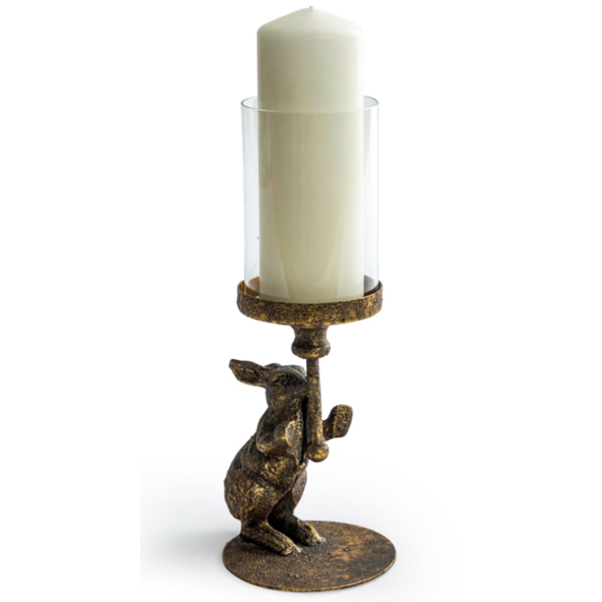 Antiqued Rabbit Candle Holder with Glass Cover