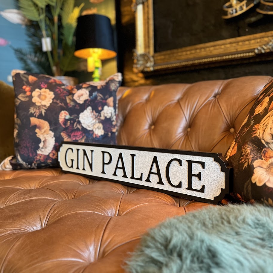 • Bold Typography – “Gin Palace” lettering stands out beautifully, making it a striking focal point for any wall.