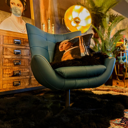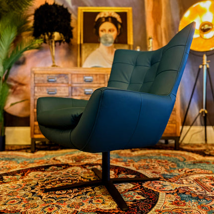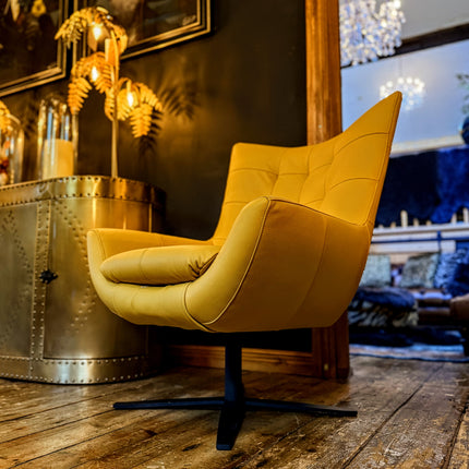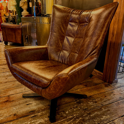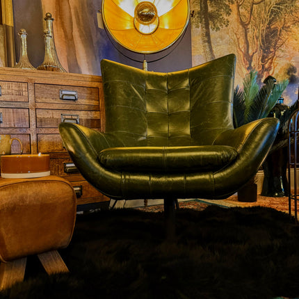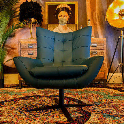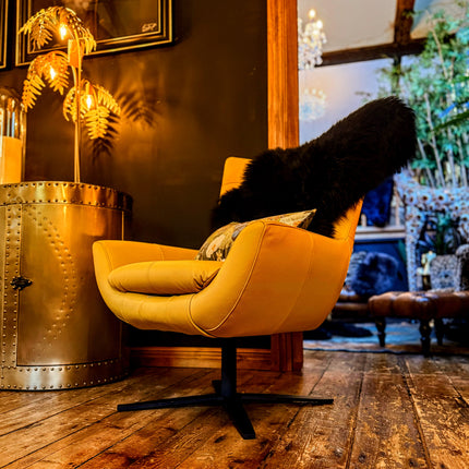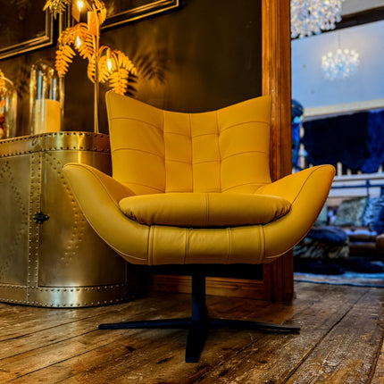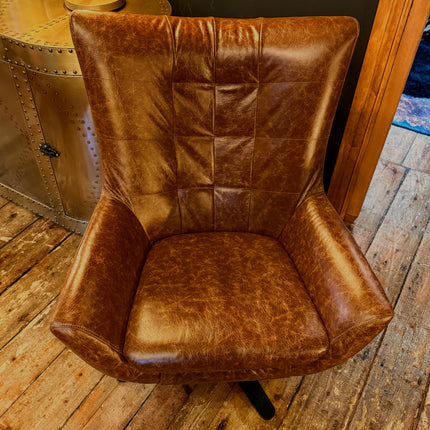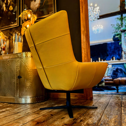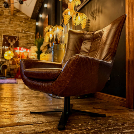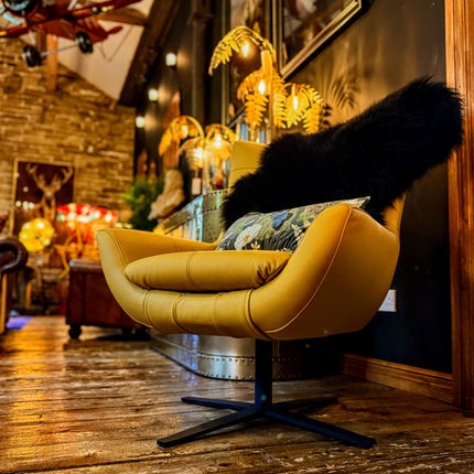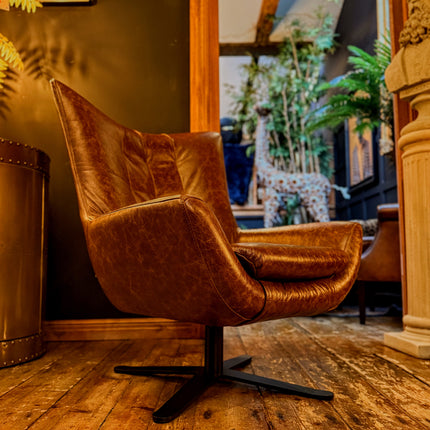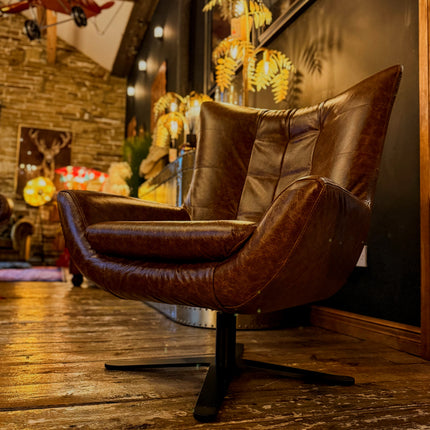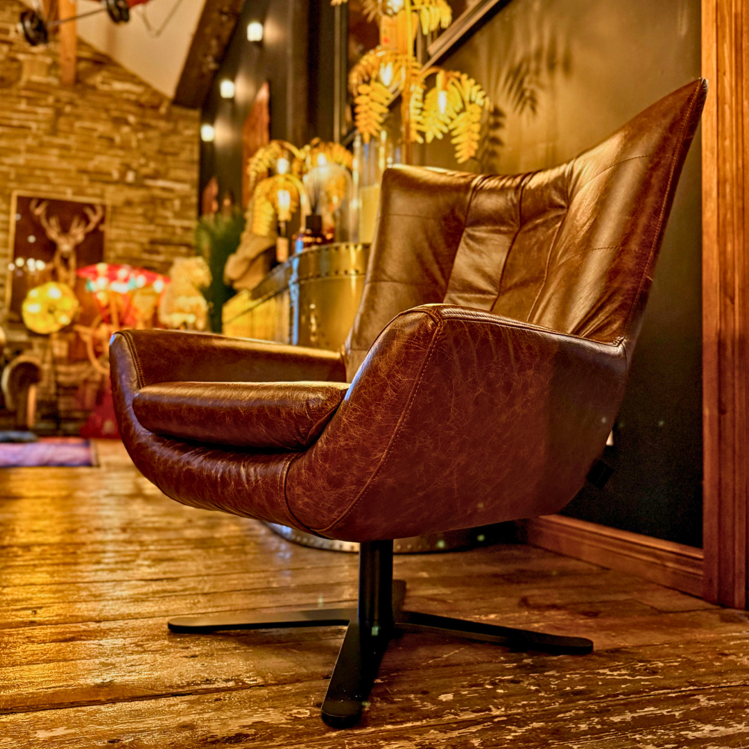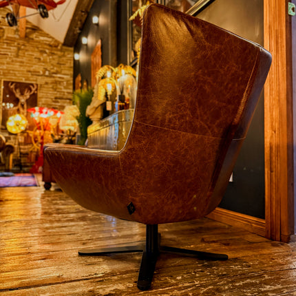 The Austin Egg Accent Chair in Leather is a bold, sculptural statement piece that instantly elevates any room. Its iconic egg-shaped silhouette wraps around you in a gentle, cocoon-like curve, offering both comfort and a touch of retro sophistication. Upholstered in sumptuous semi-aniline leather, each chair features natural grain, rich colour depth, and a texture that becomes even more beautiful as it develops a unique patina over time. The smooth swivel base adds modern practicality, making it as functional as it is stylish.