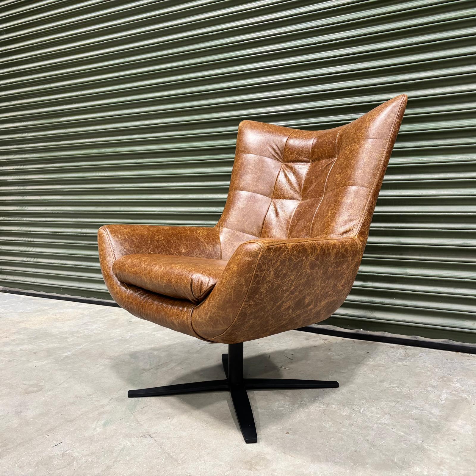 Our Austin chair has stunning Arne Jacobsen iconic design vibes. Marrying aesthetics and design, this swivel egg chair oozes effortless style with its mid-century vintage design. Dressed in stunning semi-aniline leather, this chair is warm and inviting. The curved back provides head and neck support, with an extra cushion on the base for additional comfort.