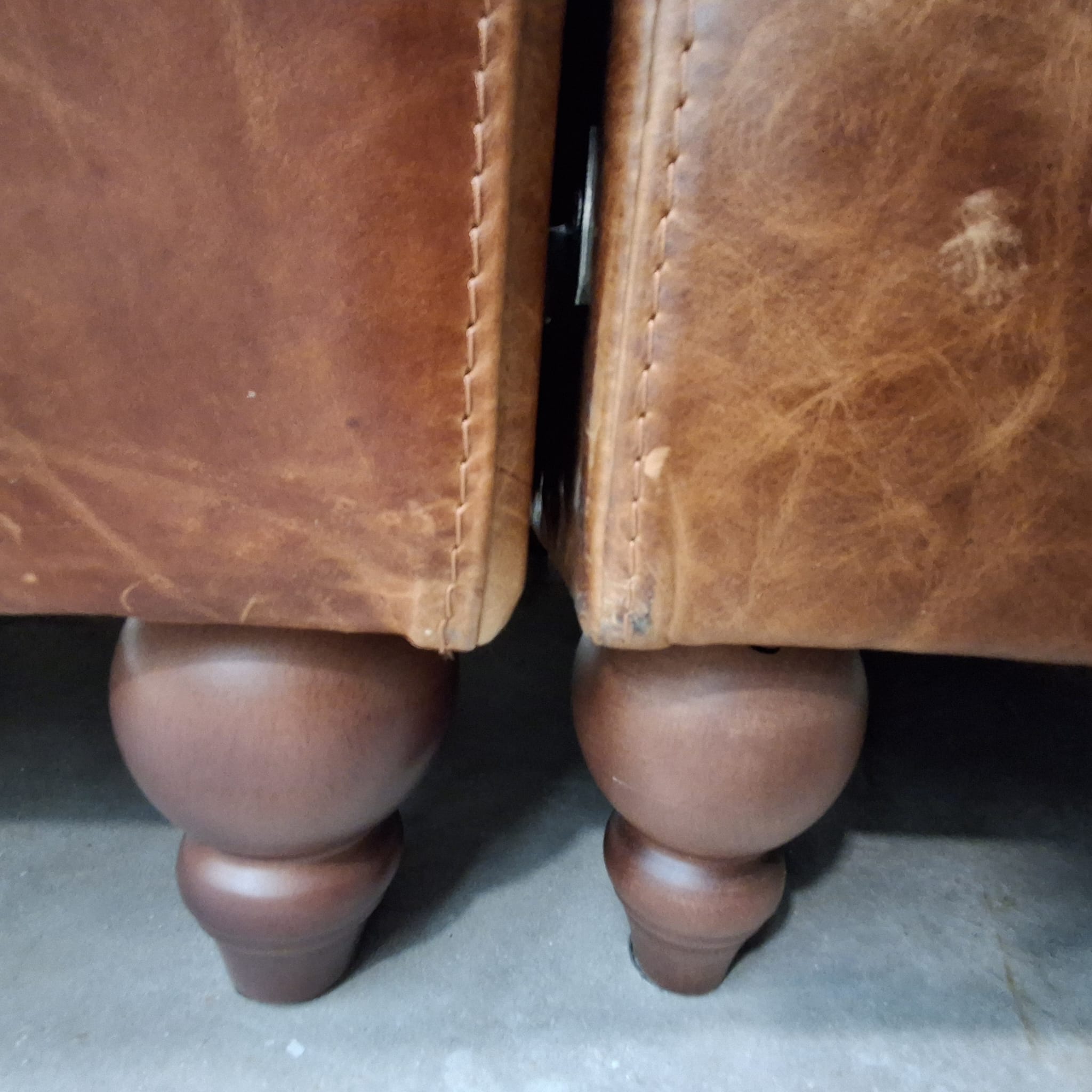 Damage- Scuffs to the leather on all corners of the sofa, scuff to the back corner unit back panel