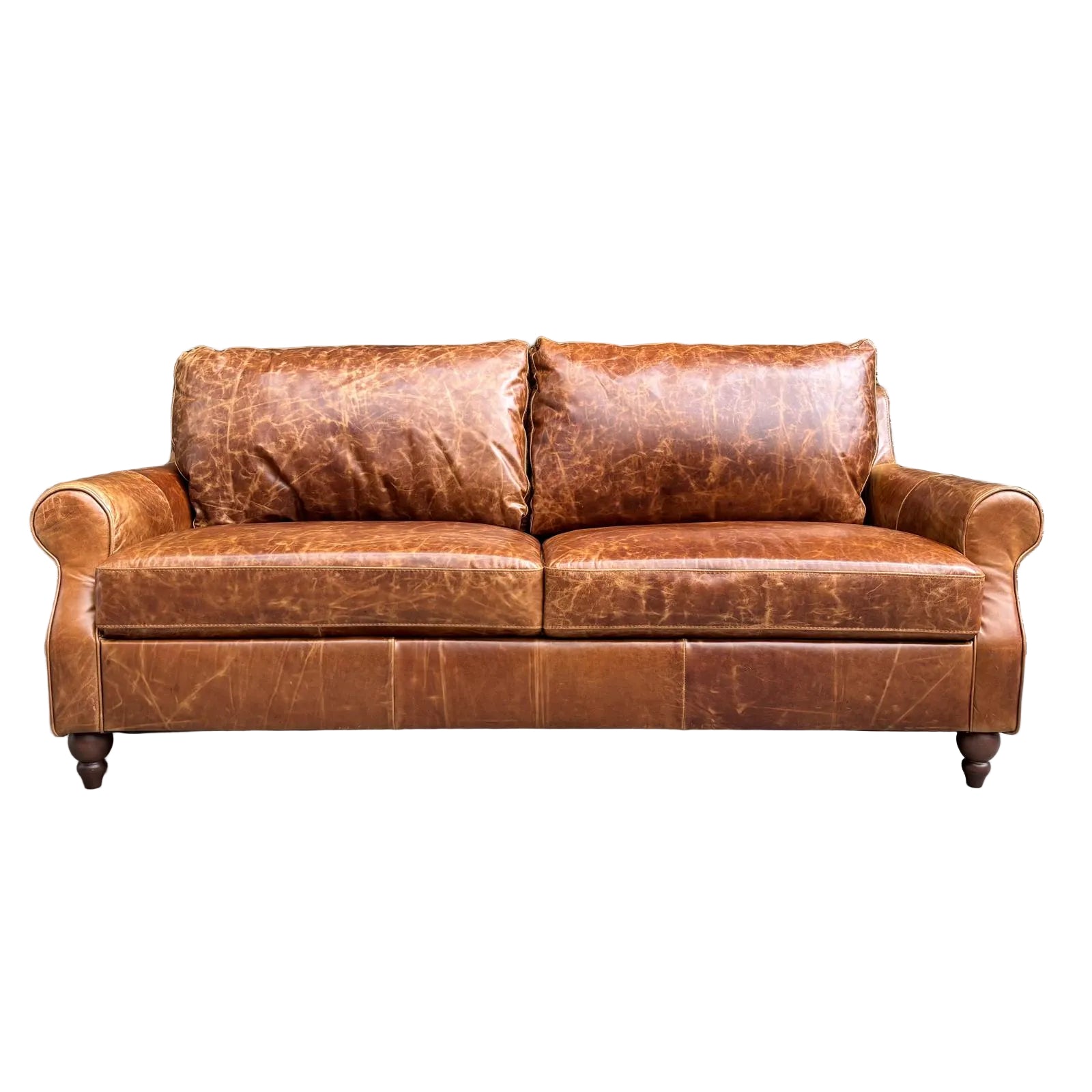 As expected with this exceptional aniline leather, nothing is added or taken away, this collection showcases the natural beauty and patina of leather and will wear in not out over time.  The beautiful natural features of the hide will provide enduring vintage appeal as loved by you and your family for years to come.