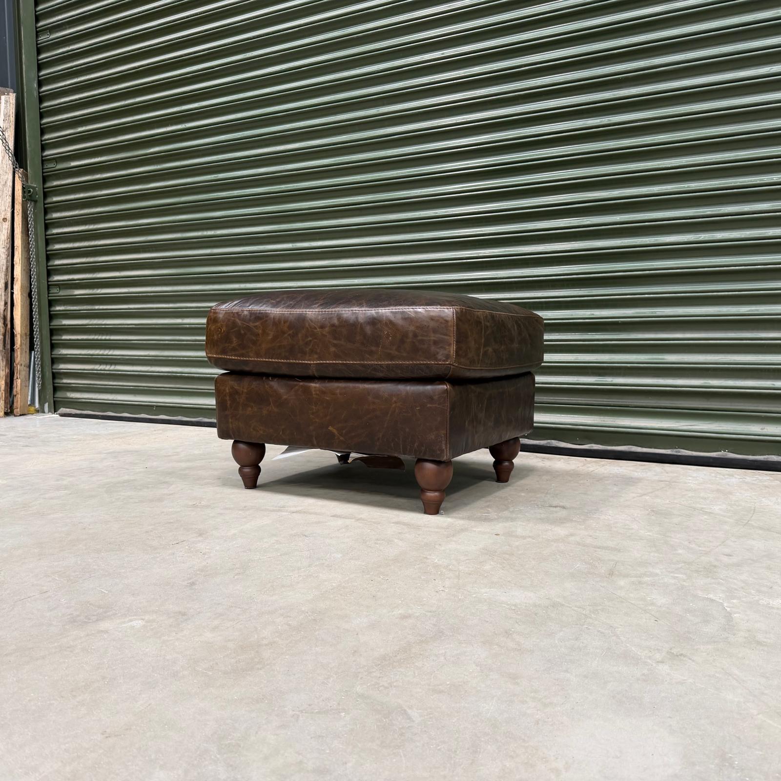 Benji in Leather Footstool / Chocolate Leather - Ex Display