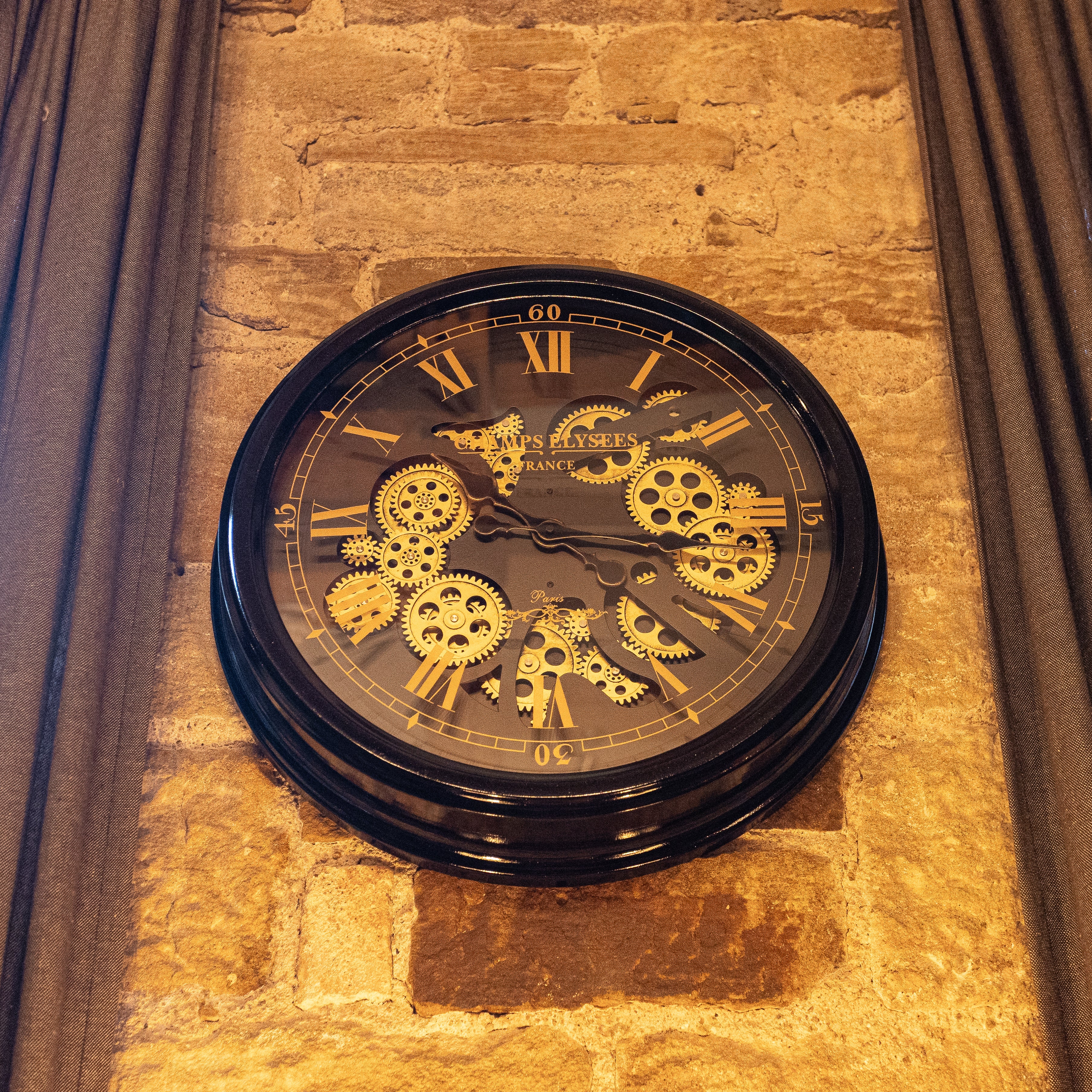 Black & Gold Medium Clock Moving Gears