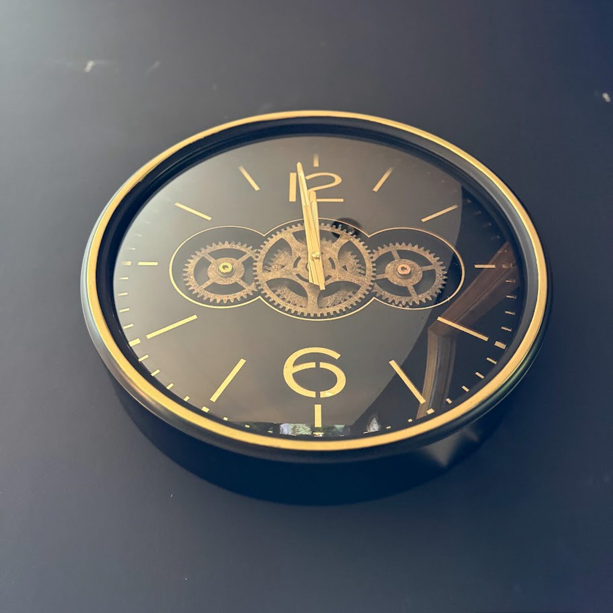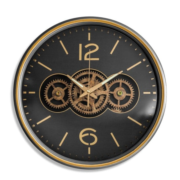 Black & Gold Moving Gears Clock with Numerals
