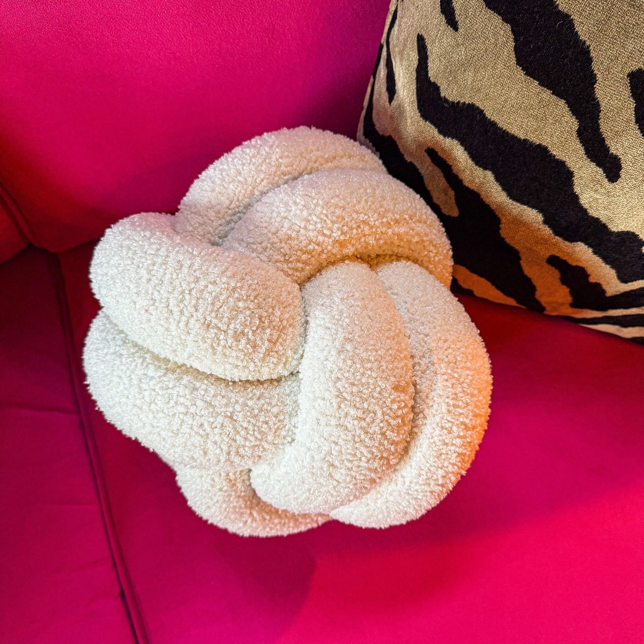Our Boucle ball knot cushions make a great accent chair accessory - we love their fluffy fun style and quirky design.