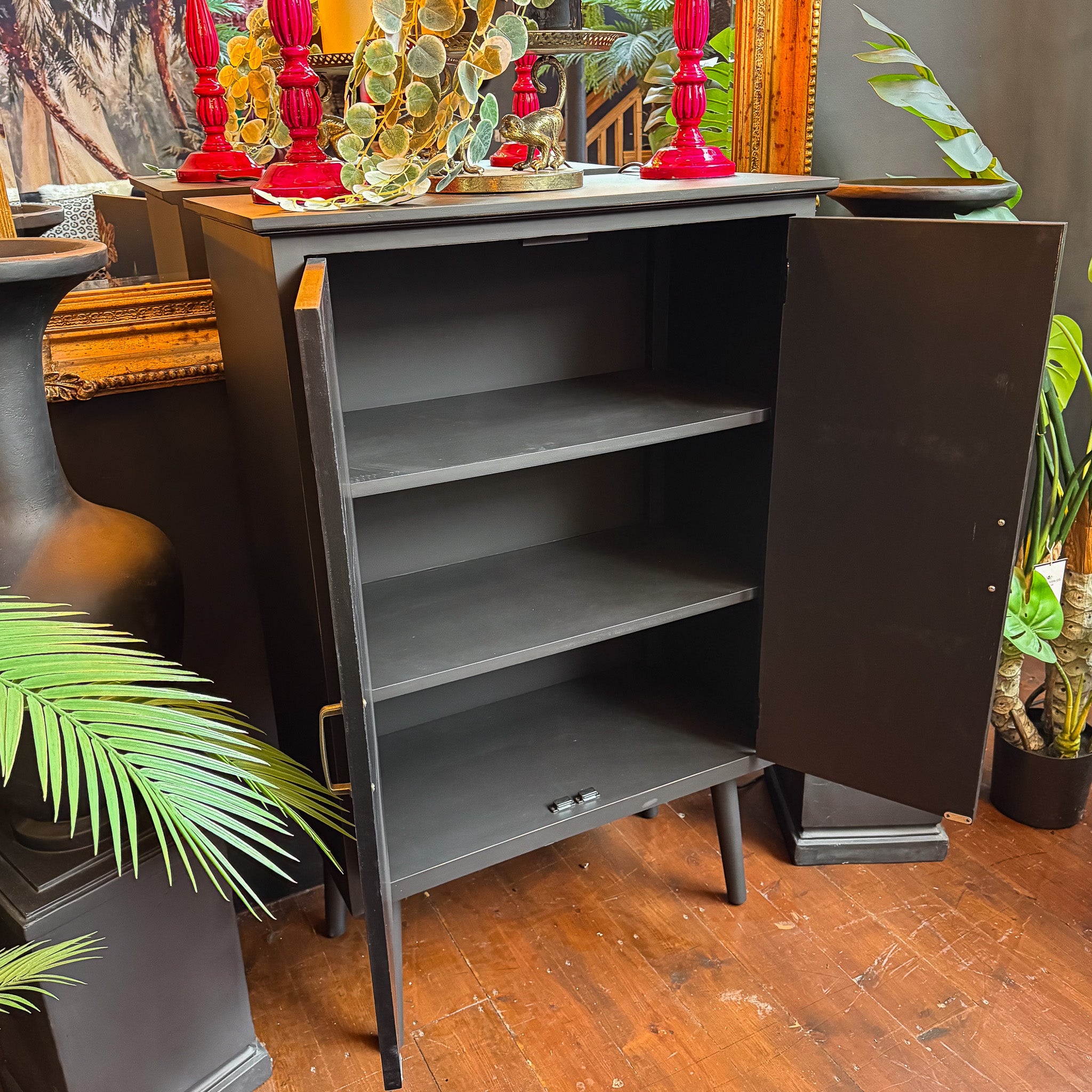 This large Victoriana cabinet provides lots of useful storage. Finished with contemporary metal handles in contrast to the ornate floral design. Inside two shelves provide plenty of useful storage with a 28cm gaps between the two shelves.