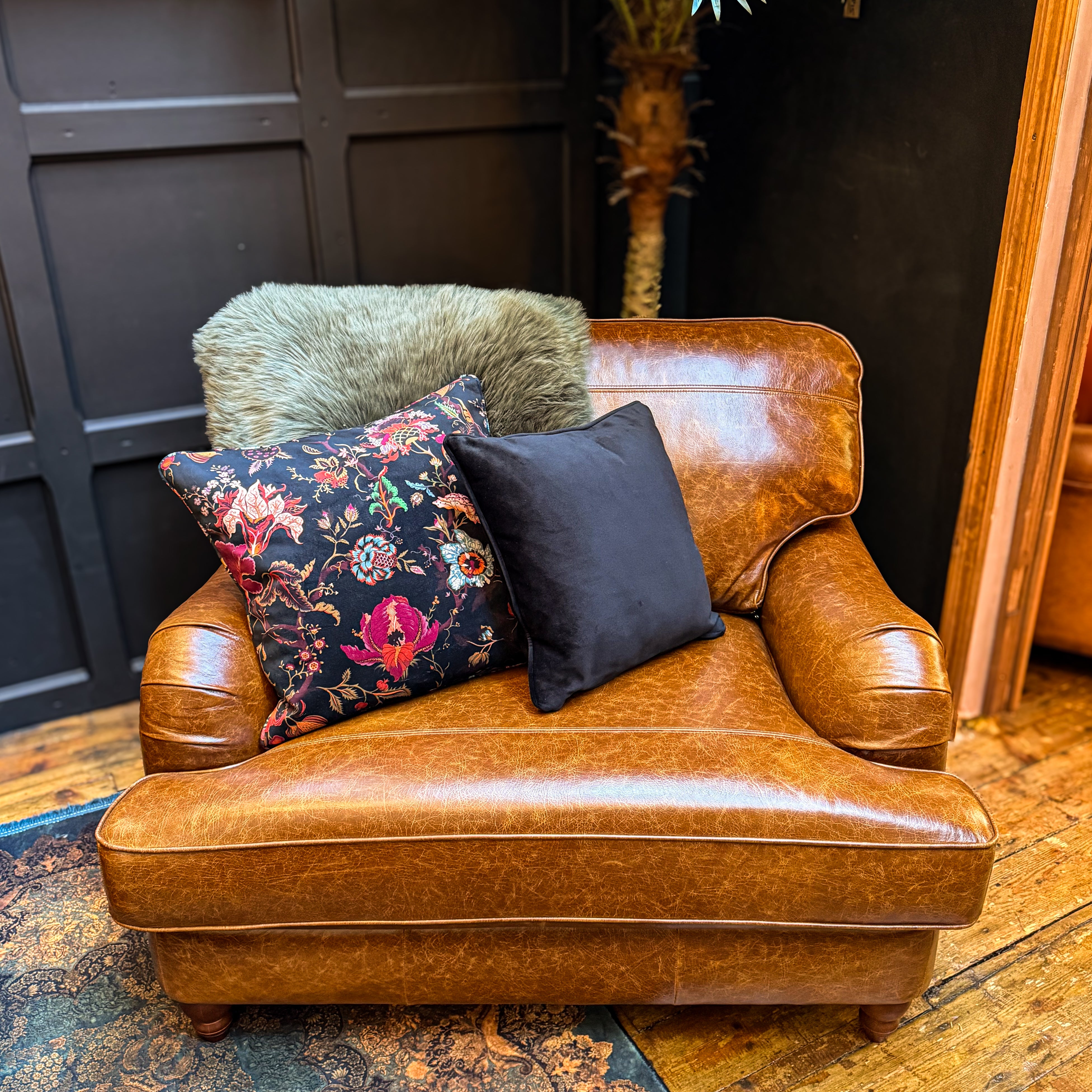 Available in two contrasting beautiful aniline leather finishes. The glossy cracked wax cuba tan leather finish is hardwearing, enhancing the richness of the natural aniline leather with a hot wax finish, accentuating the details and form with a protective sheen. Alternatively, the cognac leather finish is a beautifully supple leather, warm and inviting, it has a less glossy finish. Both are perfect for cosy nights snuggled up with a favourite book.