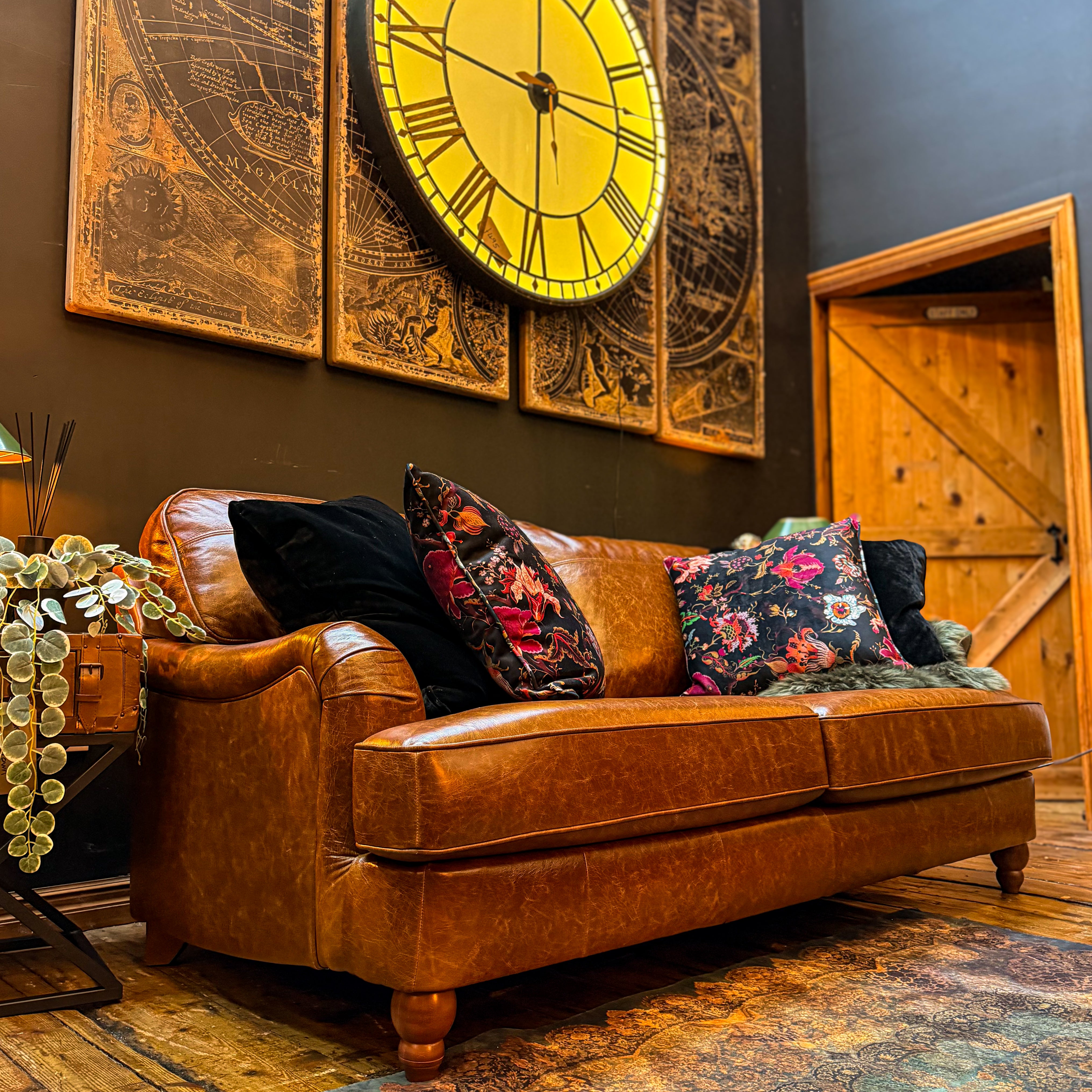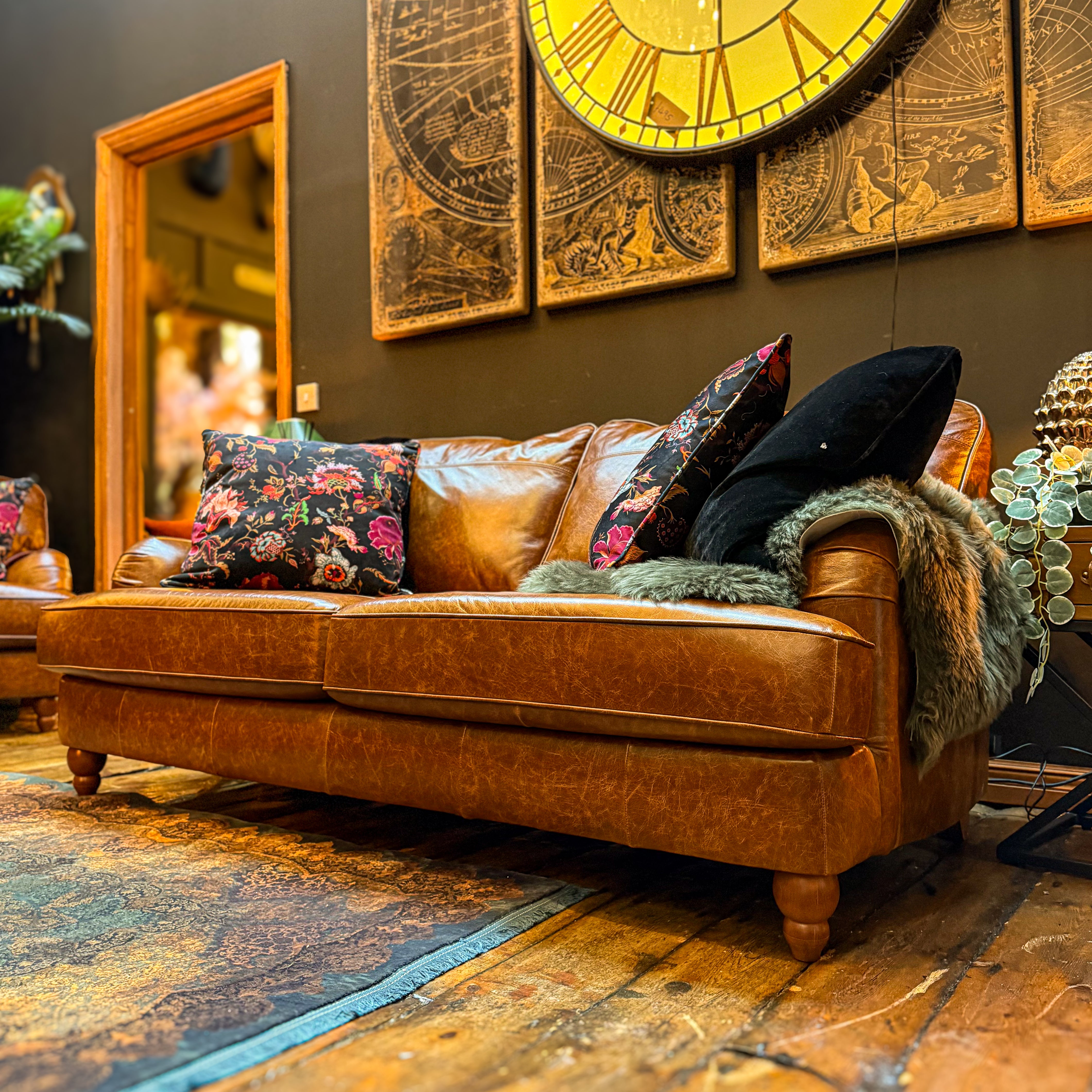 • Beautiful aniline leather finishes, choose from buttery cognac or glossy, hardwearing cracked wax cuba tan leather.