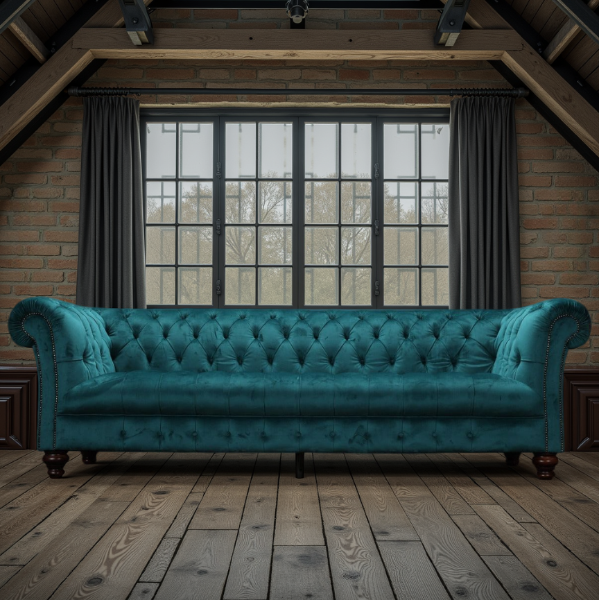 Chessington 4 Seater Chesterfield Sofa in Teal Velvet