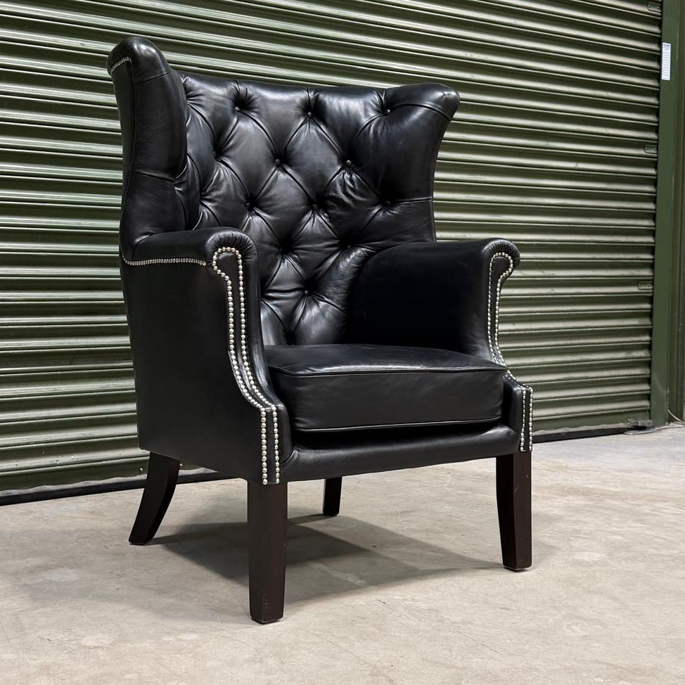 Chessington Wingback Armchair in Old English Black Leather - Clearance