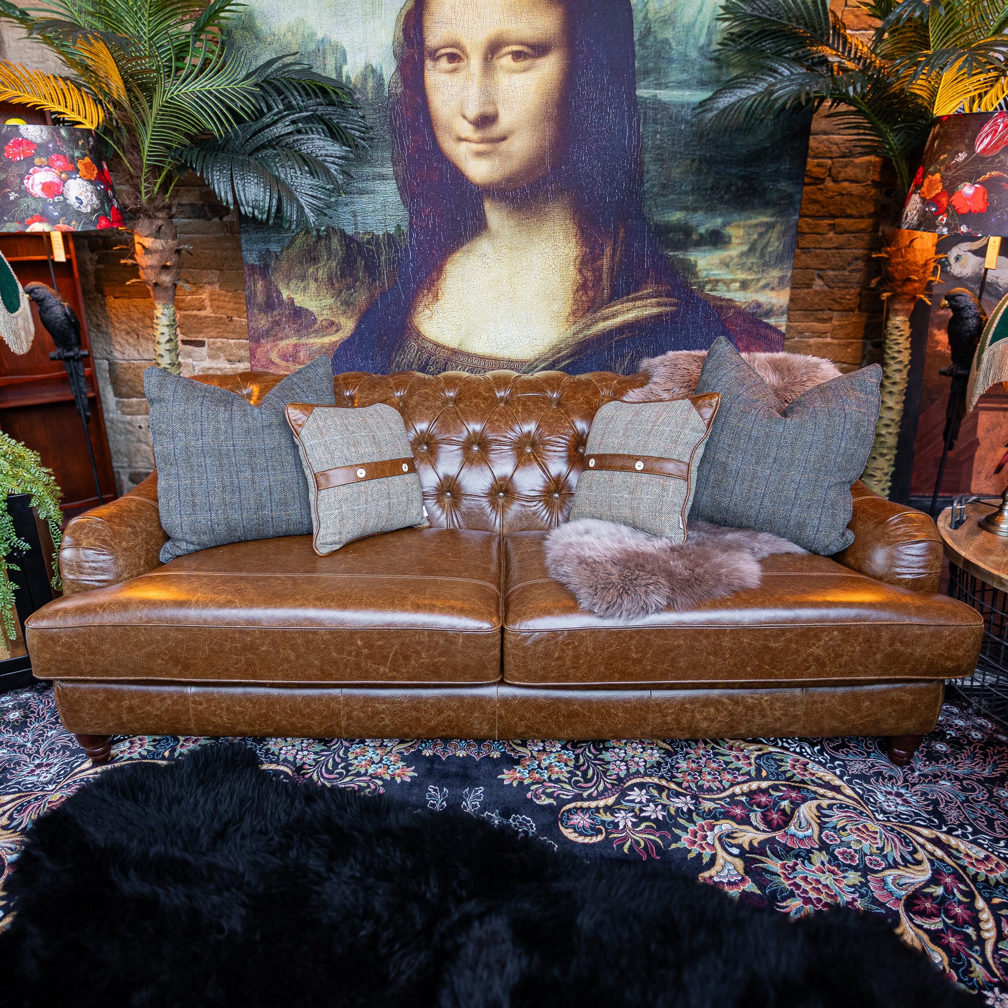 Elegant, timeless, and crafted for modern living, the Eaton Leather Chesterfield brings classic heritage design into the present day. Its signature deep-button tufting flows across a soft, billowy back, meeting gently dropped arms that create a beautifully balanced silhouette. Supple full-aniline leather enhances every curve with natural richness, while turned wooden feet add a final touch of artisanal detail.