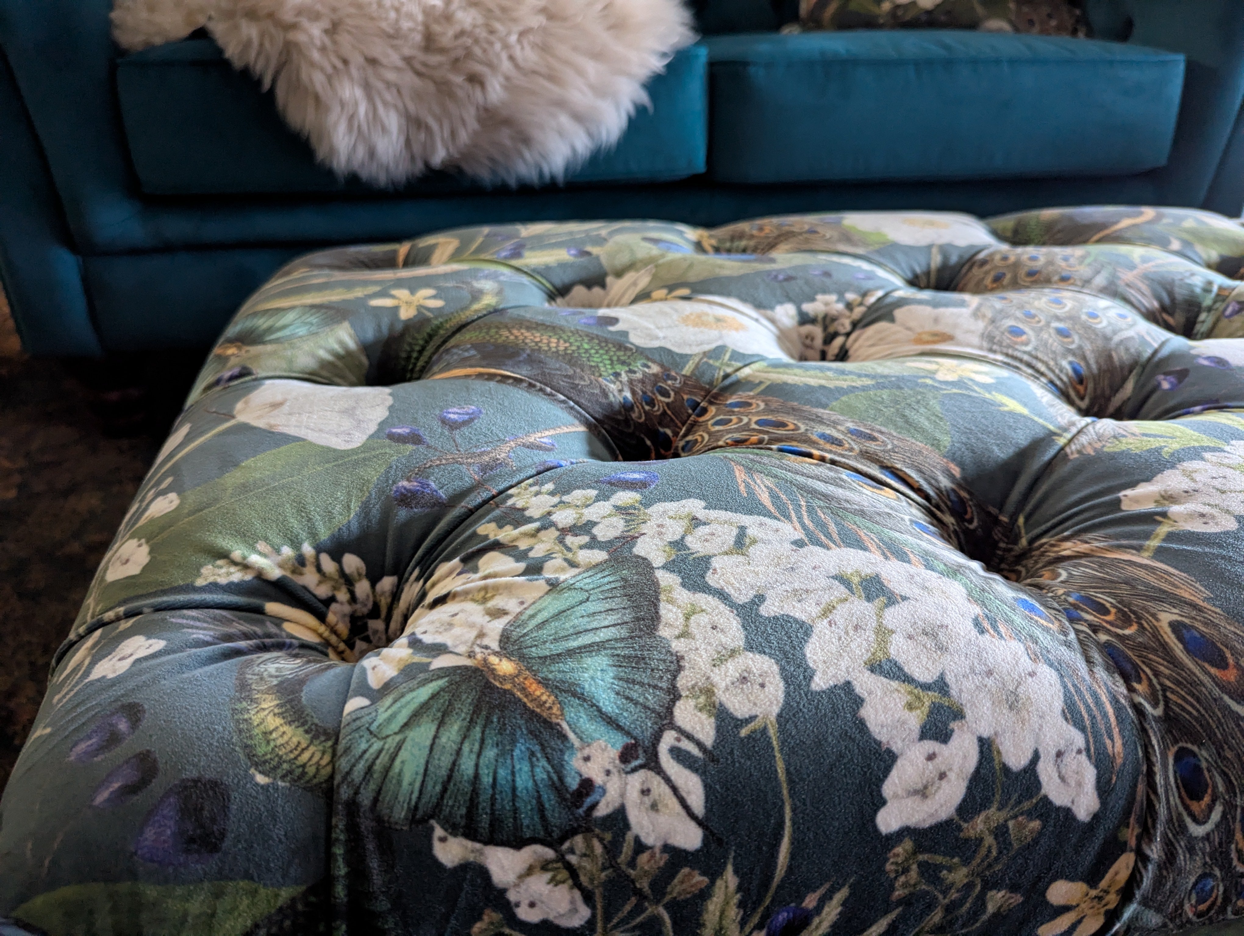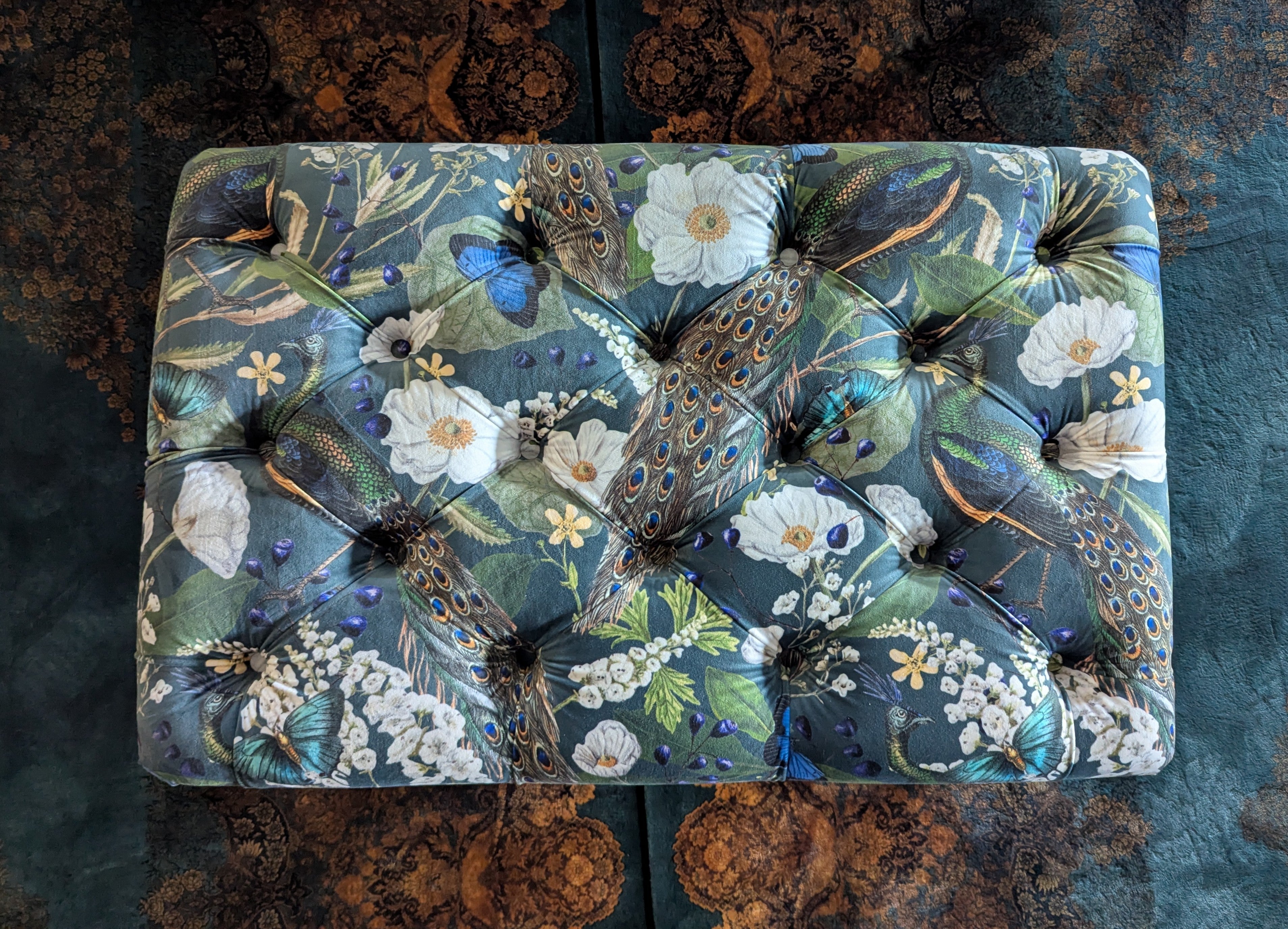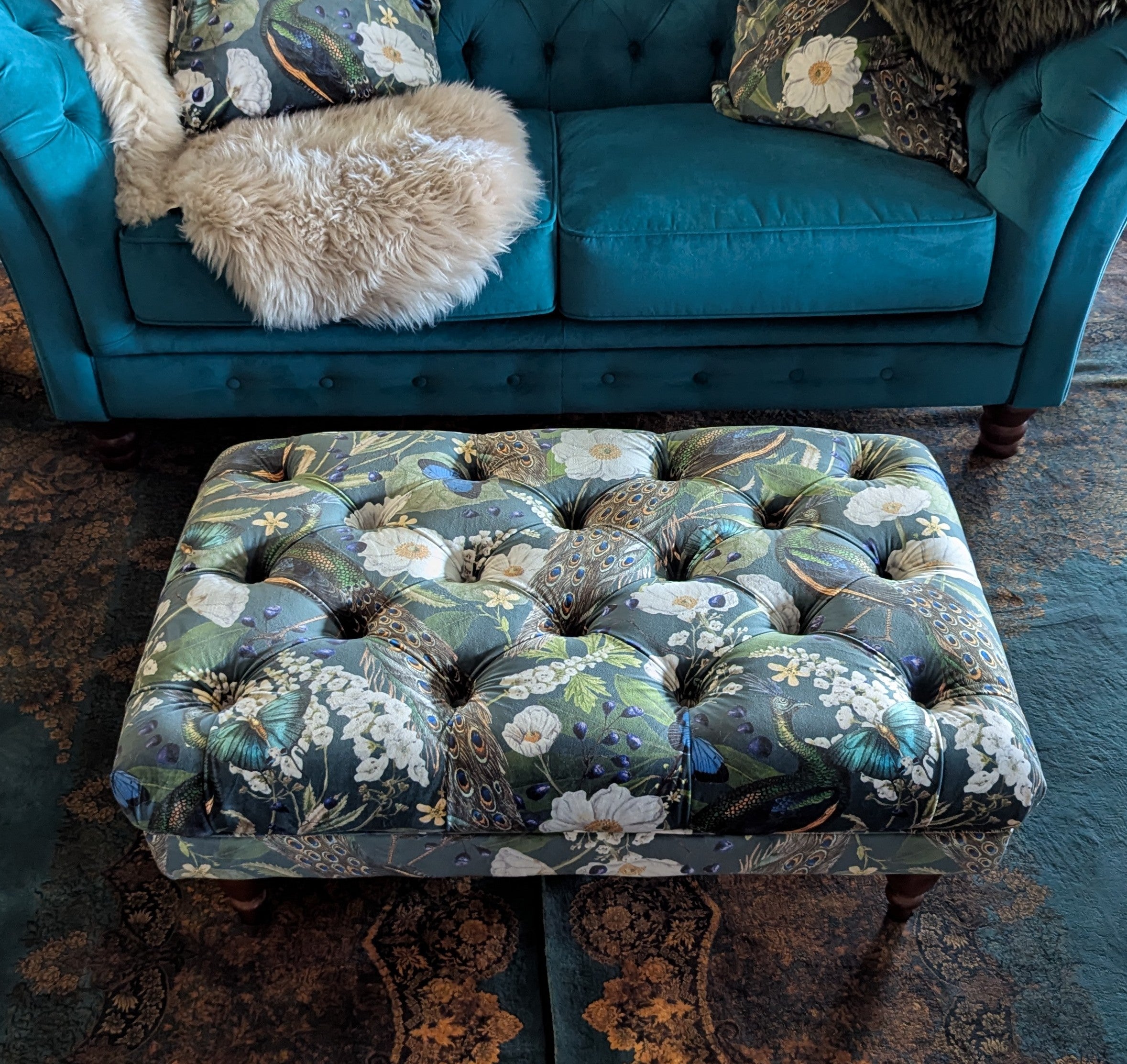 Eaton Chesterfield Footstool in Peacock Teal Velvet
