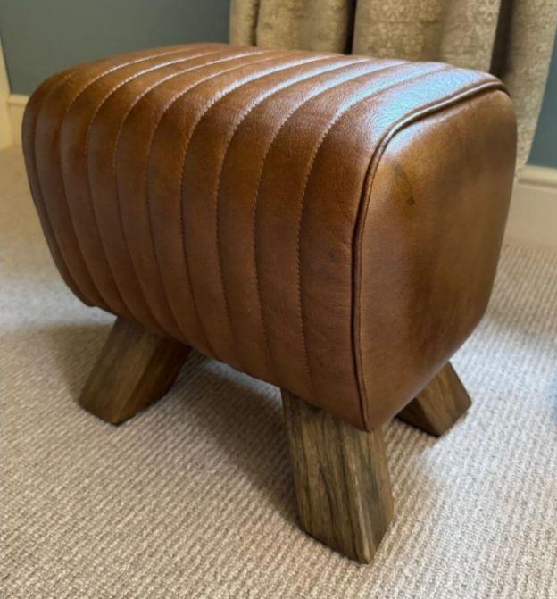 Add playful charm and practical style to your space with this Brown Leather Pommel Horse Footstool. Inspired by classic gymnasium pommel horses, its sculptural silhouette and rich brown leather make it a standout accent that’s as fun as it is functional.