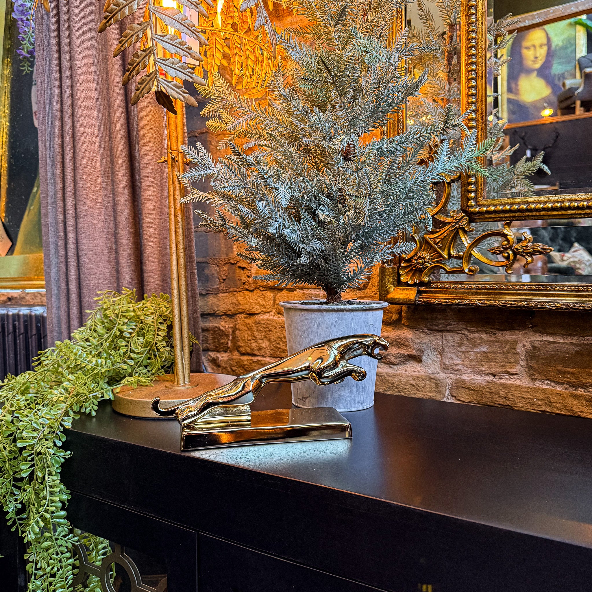 Perfect for display on a console table, bookshelf, or mantel, the Gold Jaguar Statue enhances both contemporary and classic spaces with effortless glamour. Its elegant yet fierce design makes it an ideal accent for anyone looking to introduce personality and refinement into their home. Whether styled as a standalone feature or paired with other gold accessories, it instantly elevates your interior with timeless charm and modern edge.