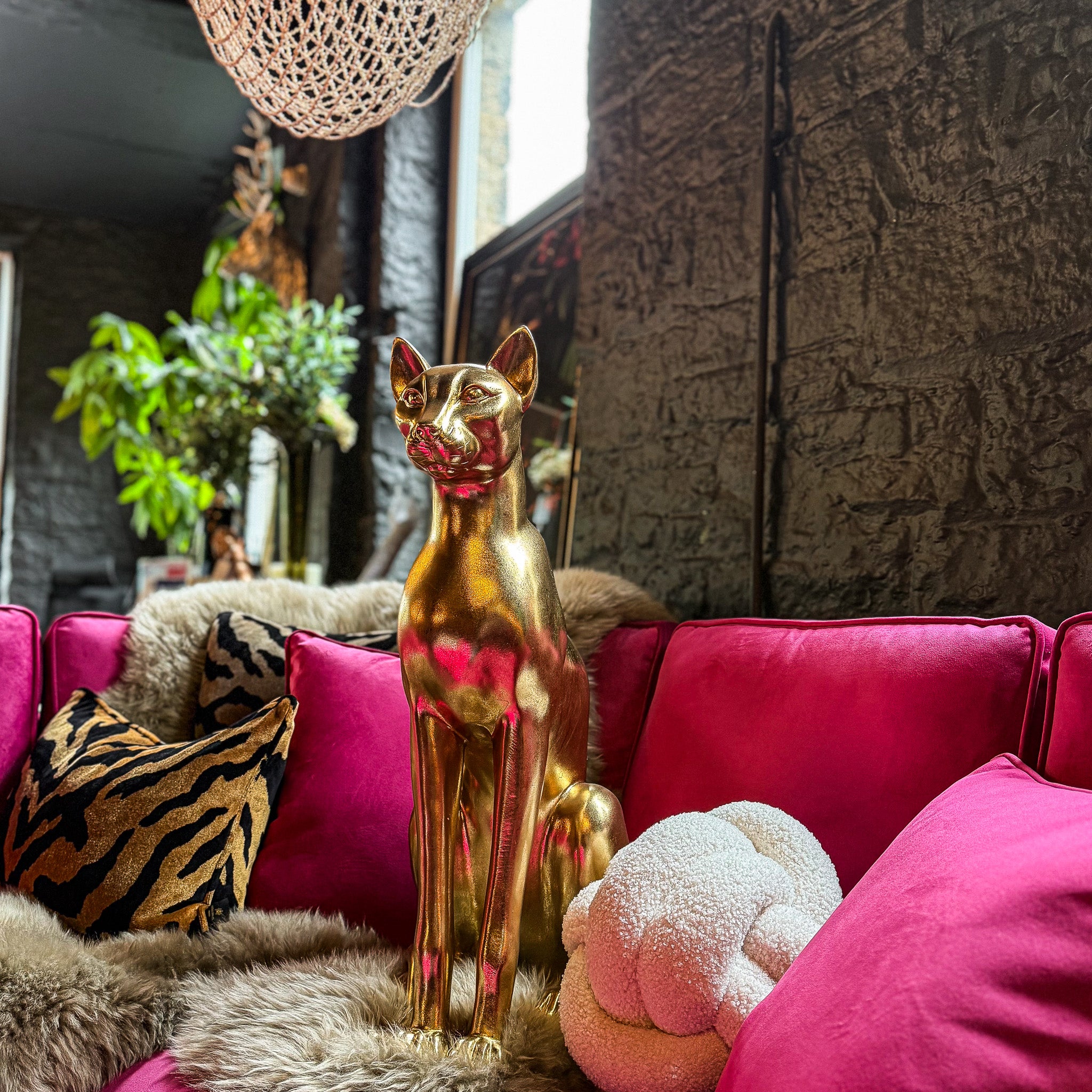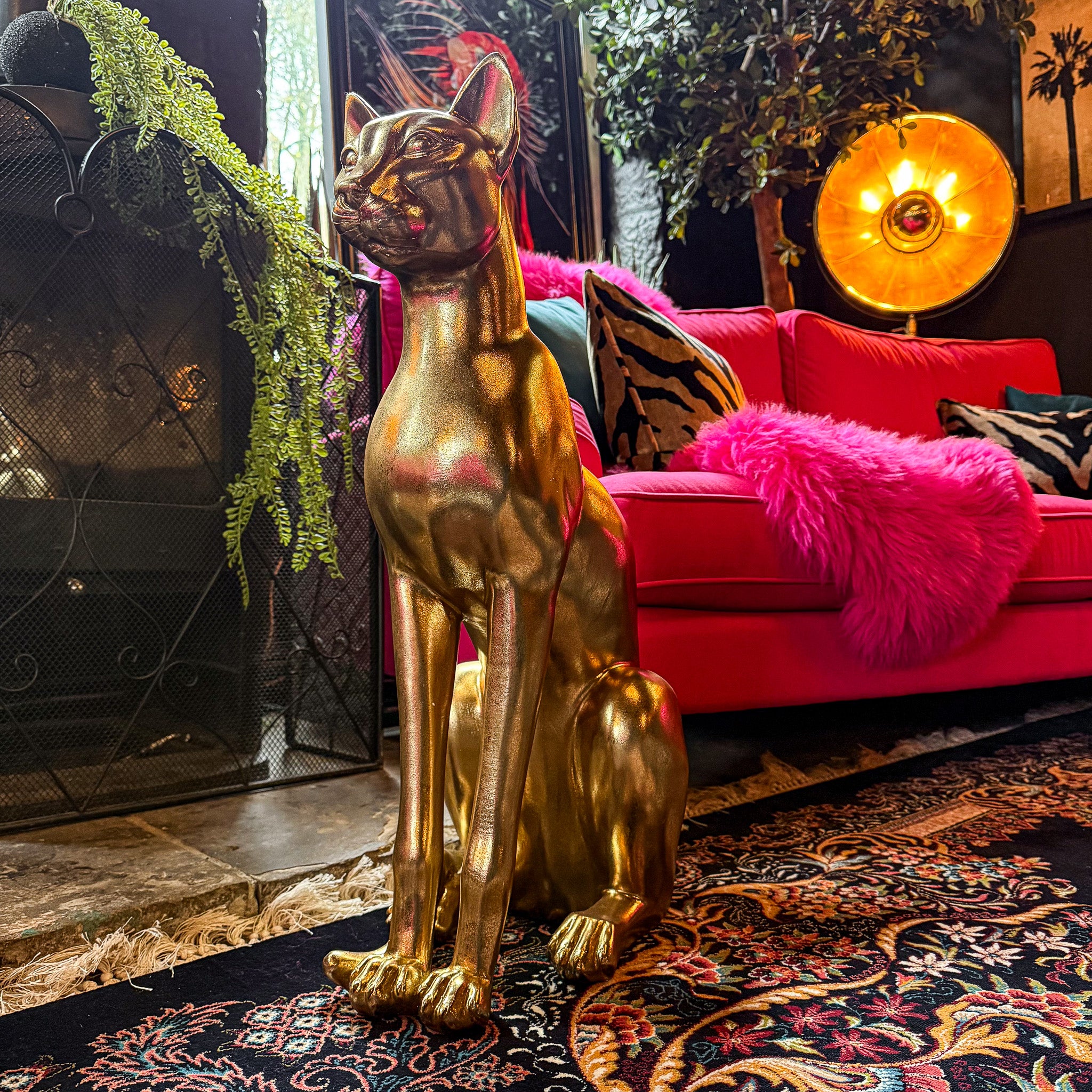 The Golden Sat Down Sphinx Cat Ornament brings the allure of ancient Egypt into your home with timeless elegance and character. Inspired by the sacred feline guardians of Egyptian mythology, this sculpture embodies grace, mystery, and regal poise. Crafted in a radiant gold finish, it beautifully captures the sleek lines and dignified posture of the sphinx, symbolising protection and wisdom. Its shimmering surface reflects light softly, creating an aura of luxury and intrigue that enriches any interior.