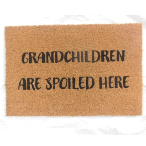 Roll out the welcome (with just a little bragging rights)! This “Grandchildren Are Spoiled Here” Doormat is more than just a way to keep your floors clean, it's a cheerful statement about who rules this house. Crafted from durable coir with a weather-resistant backing, it stands up to muddy boots, playful paws, and everyday wear. The bold text provides a warm, playful greeting to visitors and a wink to the grandkids: you’re honoured, treasured, and absolutely spoiled here. Perfect for porches, entryways, or gift-giving, this doormat combines practicality with personality in one heart-warming package.