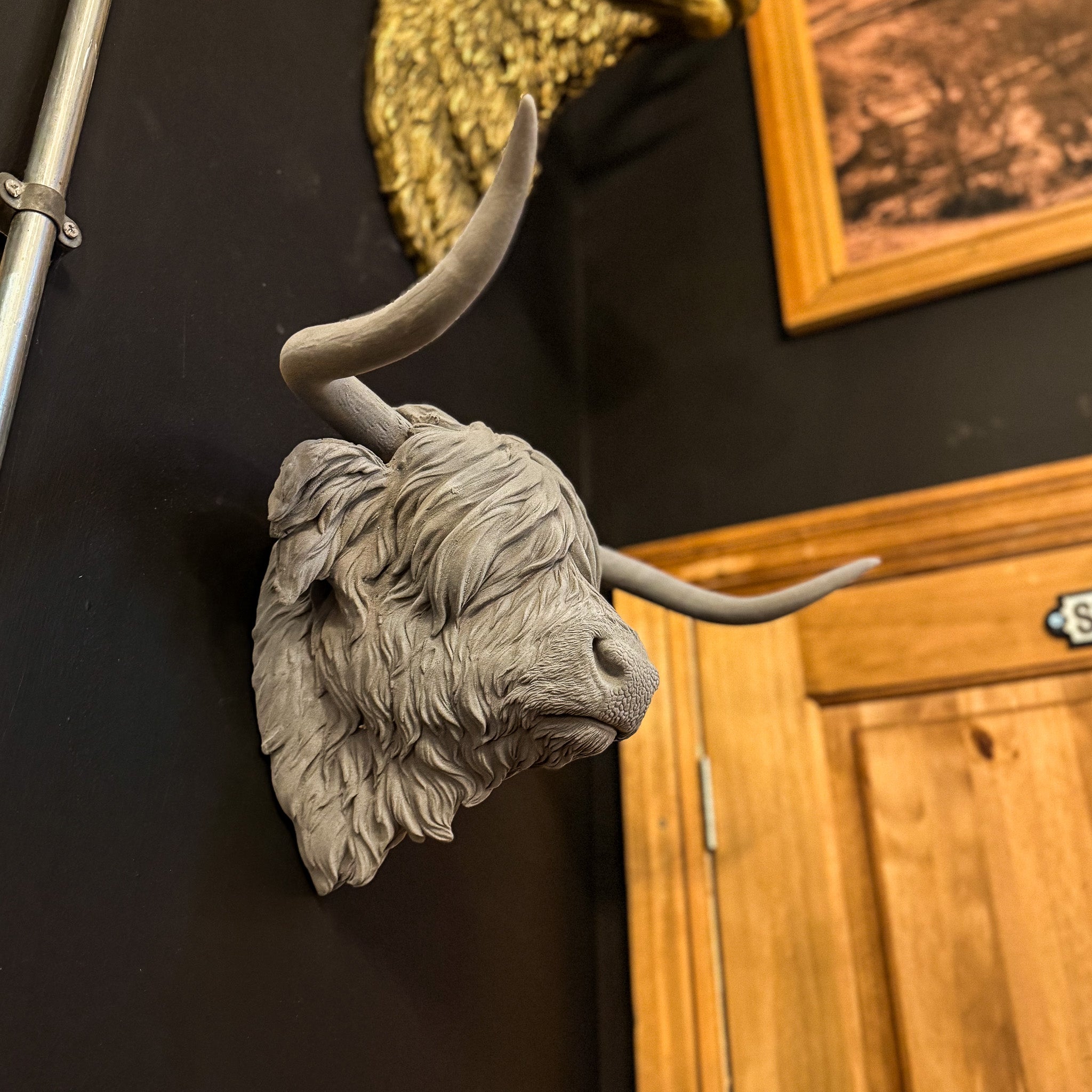 Measurements: 46cm W, 30m D, 38cm H. Turn blank wall space into a focal point with the Grey Cow Head, a...
