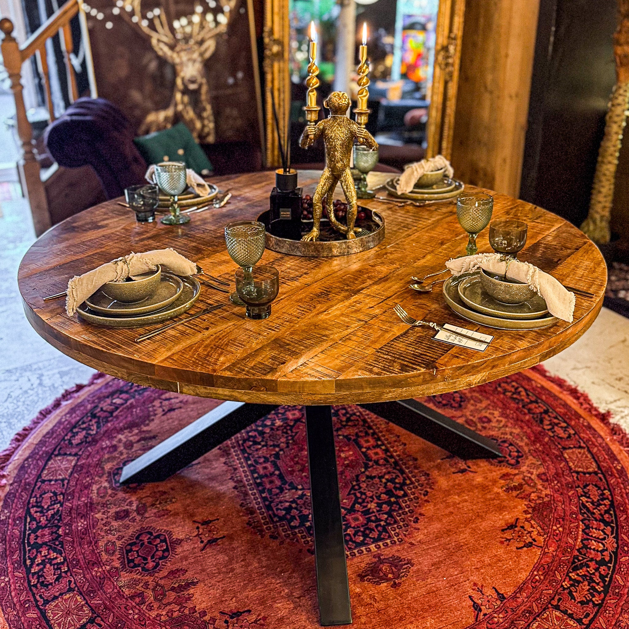 Bring bold, modern character to your dining space with our Industrial Round Dining Table, a perfect blend of raw materials and refined craftsmanship. Designed to make a statement from every angle, this table pairs the warmth of solid wood with the strength of industrial metal, creating a striking centrepiece for contemporary, loft-style, or rustic interiors.