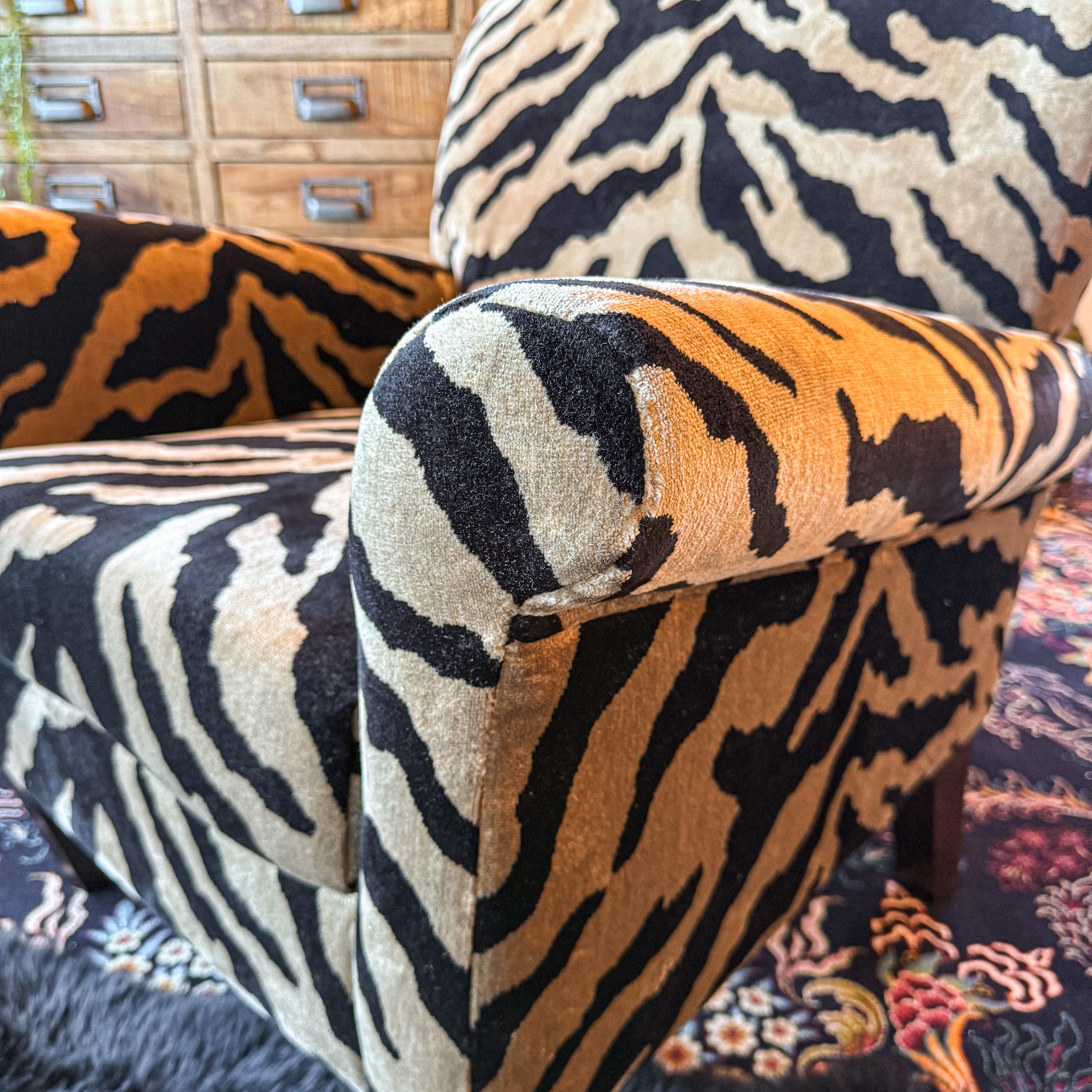 Sale -16% Product form Knightsbridge Armchair in Zebra Cream Velvet £545.00£645.00Incl. VAT Bespoke Order: Delivery 10 to 12 Weeks - Allow an extra 2–4 weeks for festive-season orders due to factory closures. Size is not available. Measurements: 79cm W, 79cm D, 75cm H. Read more Bespoke Order: Delivery 10 to 12 Weeks - Allow an extra 2–4 weeks for festive-season orders due to factory closures. Size is not available. Watch video We Recommend Adding Quantity Add to Basket Pay in 3 installments of £181.66 Description Measurements: 79cm W, 79cm D, 75cm H.