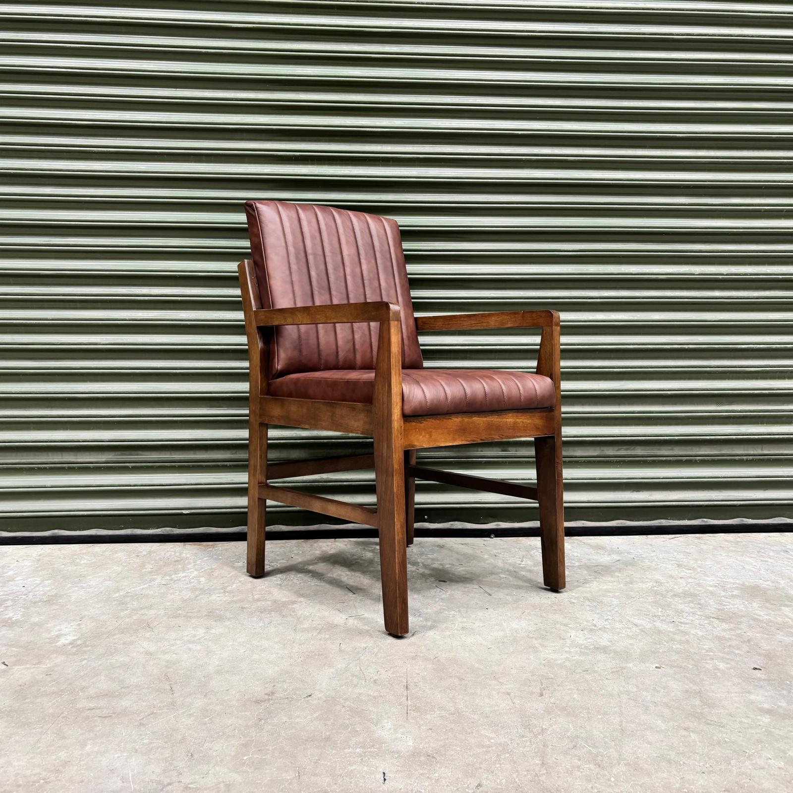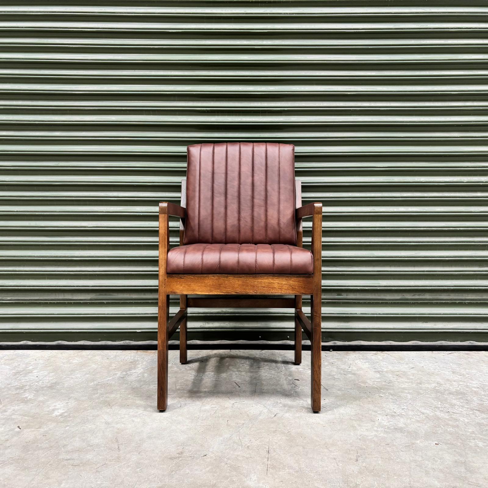 Kodu Dining Chair with Arms in Dark Brown Leather - Ex Display