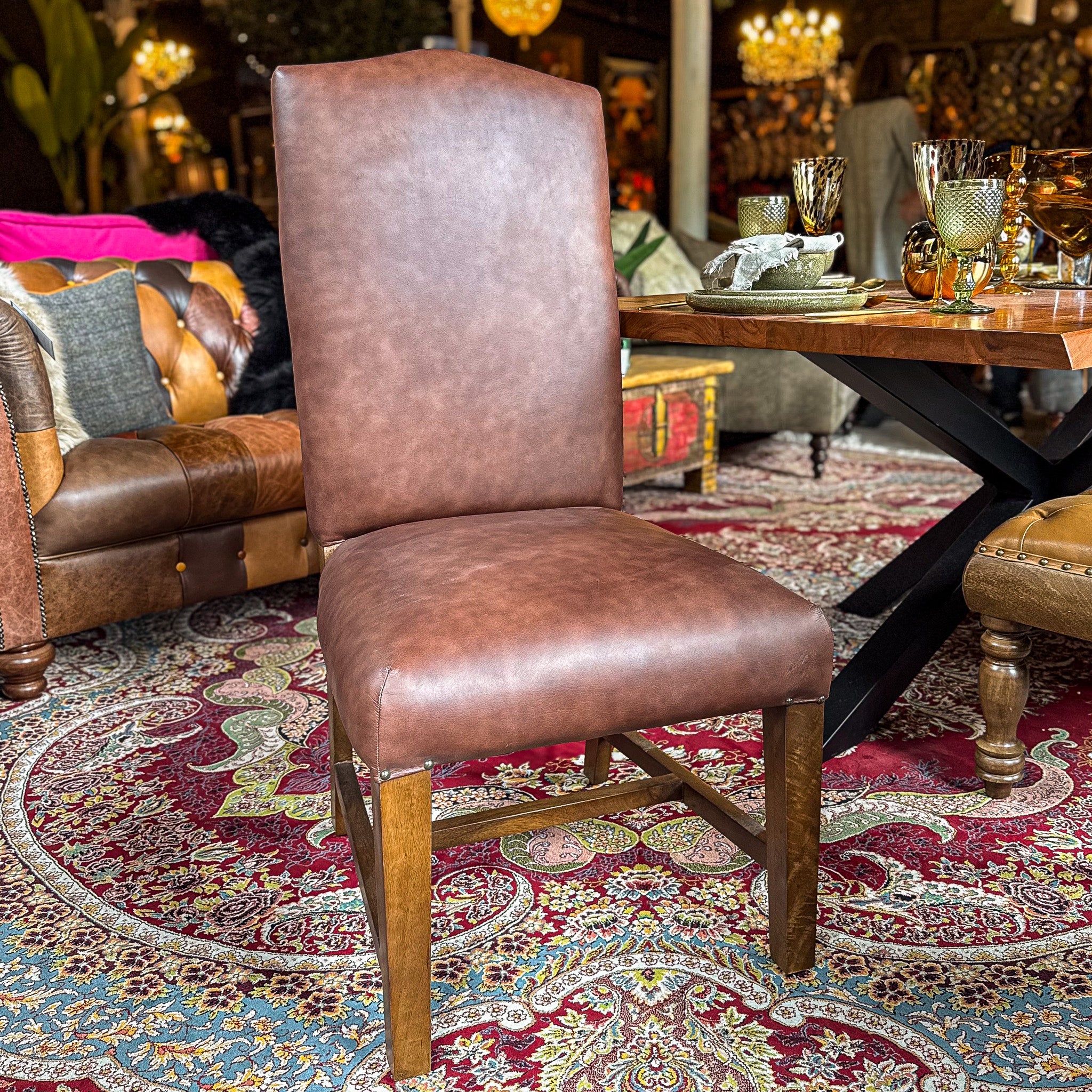 Kodu Tall Dining Chair in Brown Leather - Clearance
