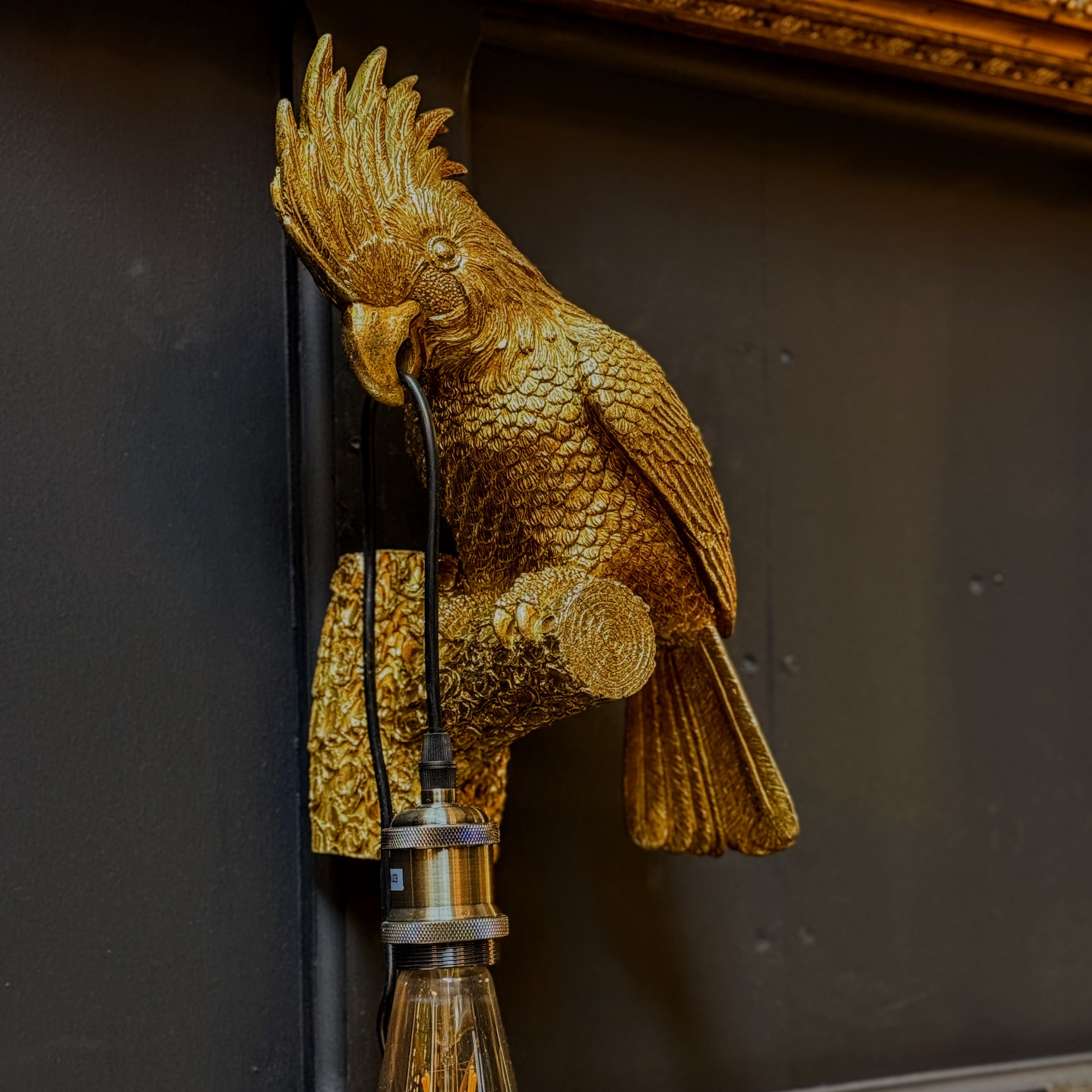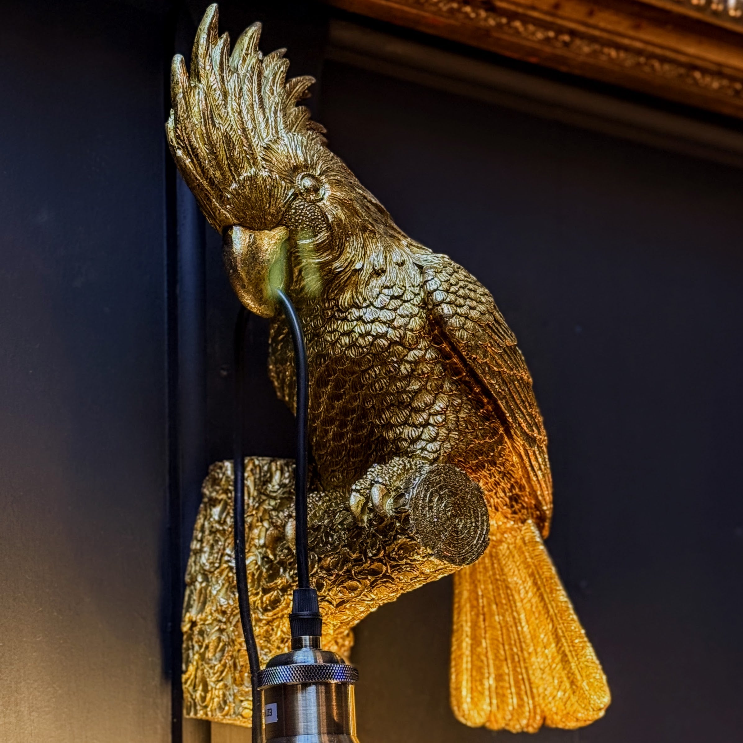 Perfect for hallways, lounges, or bedside spaces, this wall-mounted statement piece adds a playful yet sophisticated touch to your décor. Whether styled solo or as a pair to frame artwork or mirrors, the Gold Antique Parrot Lamp is guaranteed to spark conversation and bring a dash of character to any room.