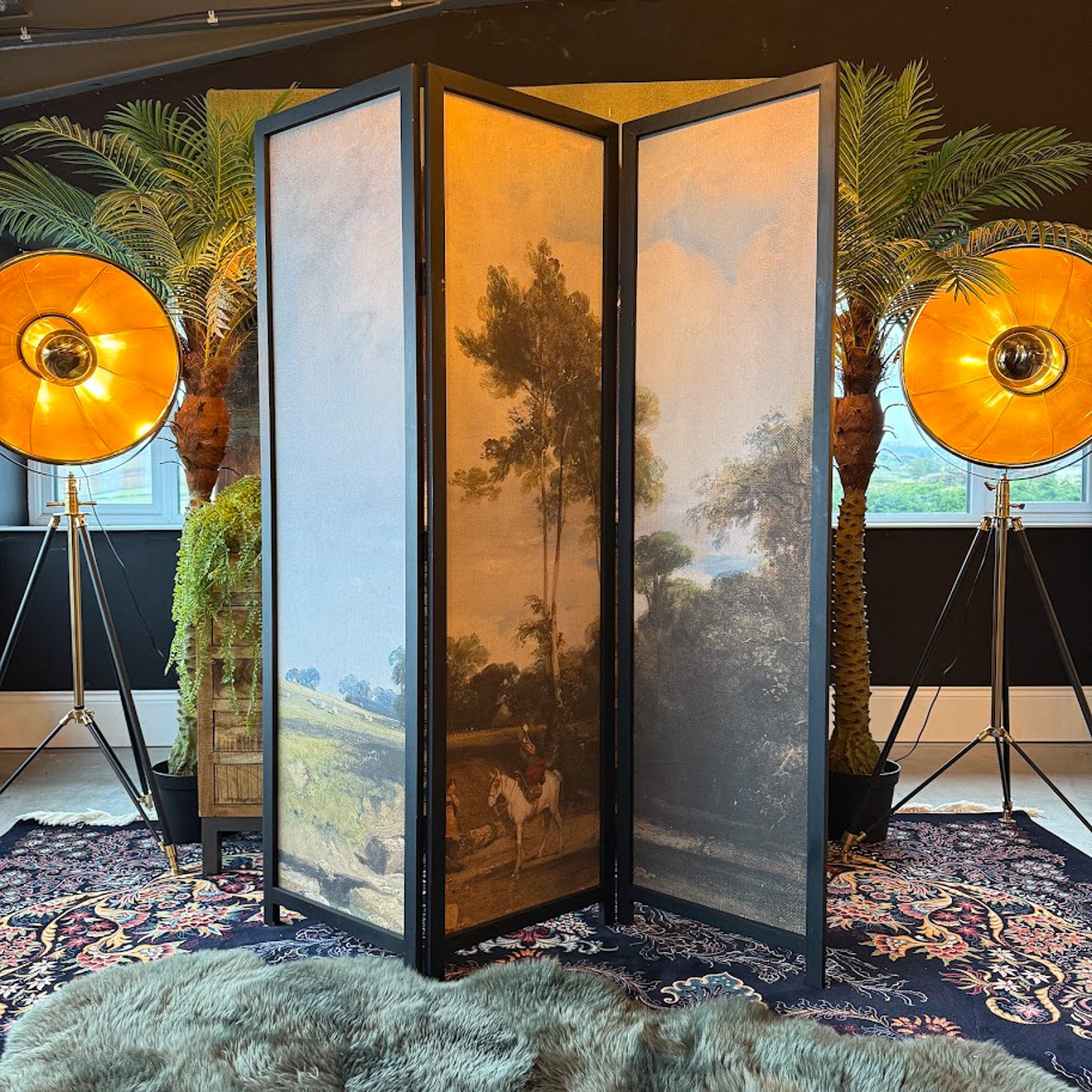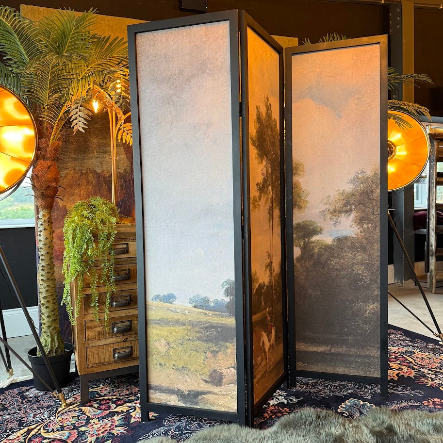Elevate your home with the Landscape Picture Screen, a striking decorative piece standing 180 cm tall, 50 cm wide and 5 cm deep, perfect for adding height and visual interest without overwhelming your space. Crafted with attention to detail, its slender profile and elegant design make it ideal for hallways, narrow walls or as a focal point in your living area. Displayed in Vintage Sofa Co’s curated showroom in a converted mill in the Yorkshire countryside, this screen embodies a blend of rustic charm and refined sophistication—each piece chosen to bring personality and character to your space. At £195, it’s more than décor; it’s an artful statement for your interior.