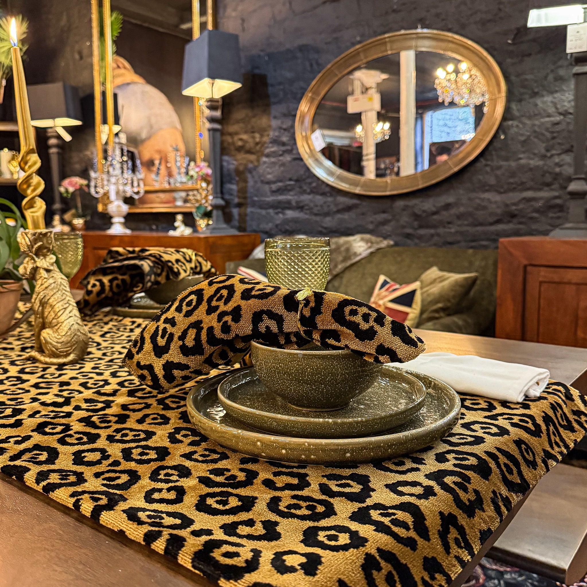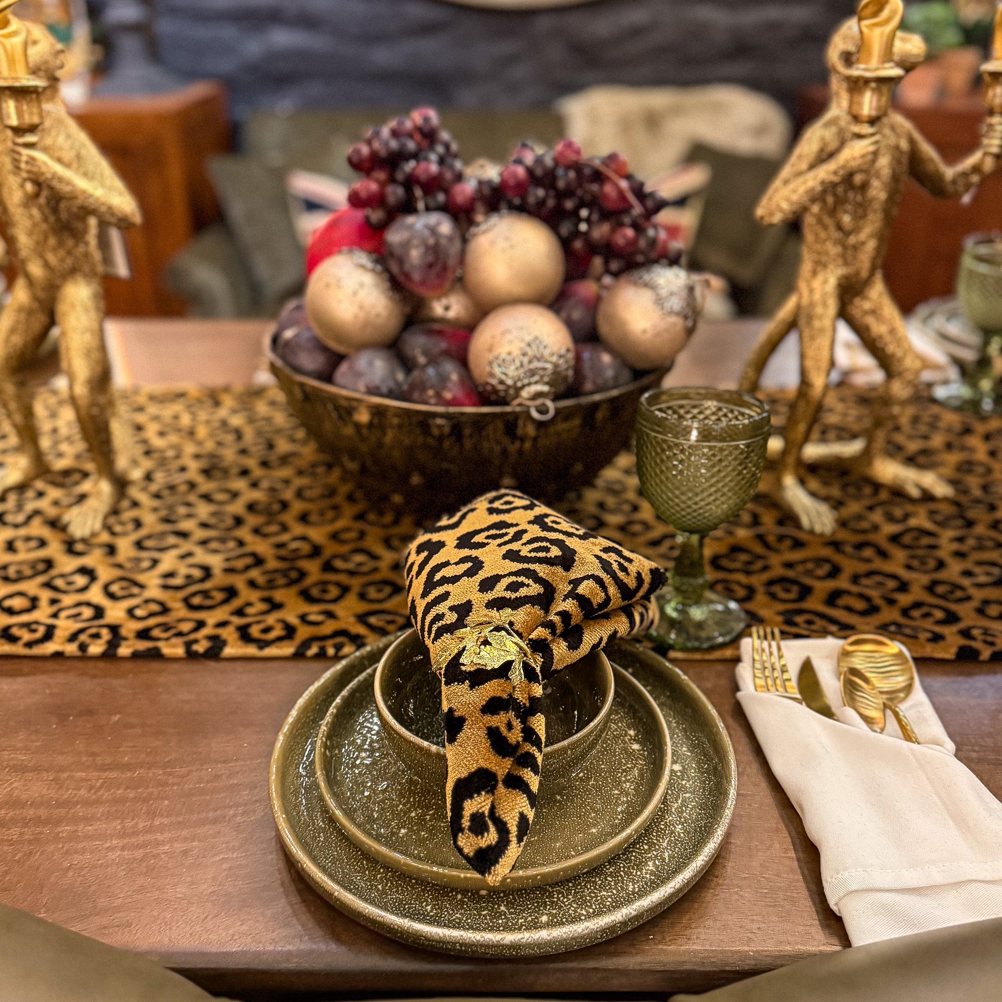 Leopard Gold Table Runner and Napkin Set