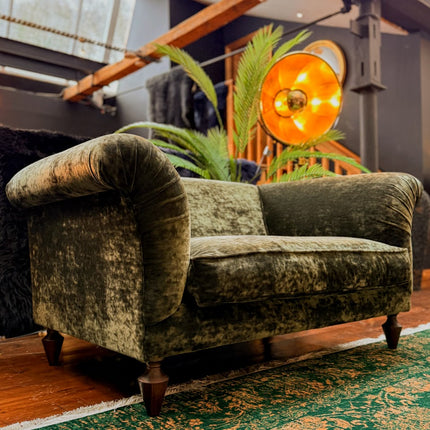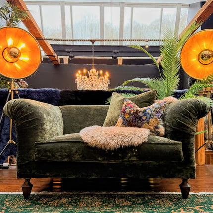 The Loretta is dressed in vintage style GP & J Baker velvet. Mulberry Velvet is a luxurious cotton velvet in a colour palette inspired by the glamorous evening gowns and stylish smoking jackets of the 1920s and 30s. The texture of the velvet will slightly change over time with normal use to give a vintage feel.