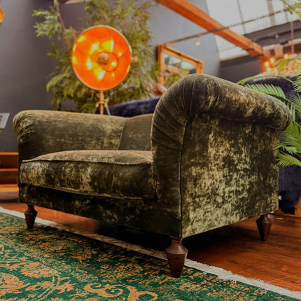 Featuring a low, sweeping silhouette and beautifully pleated sun-ray arms, the Loretta brings effortless glamour to any living space. Upholstered in premium Italian velvet by GP & J Baker, the long-pile fabric creates a rich, vintage-inspired texture that catches the light and becomes even more characterful over time.