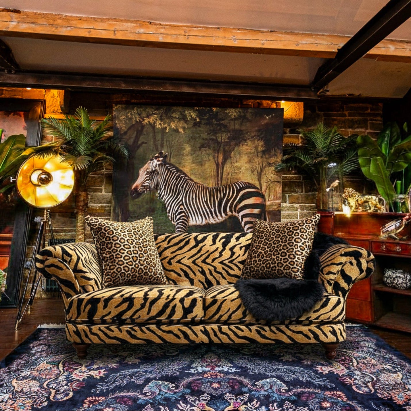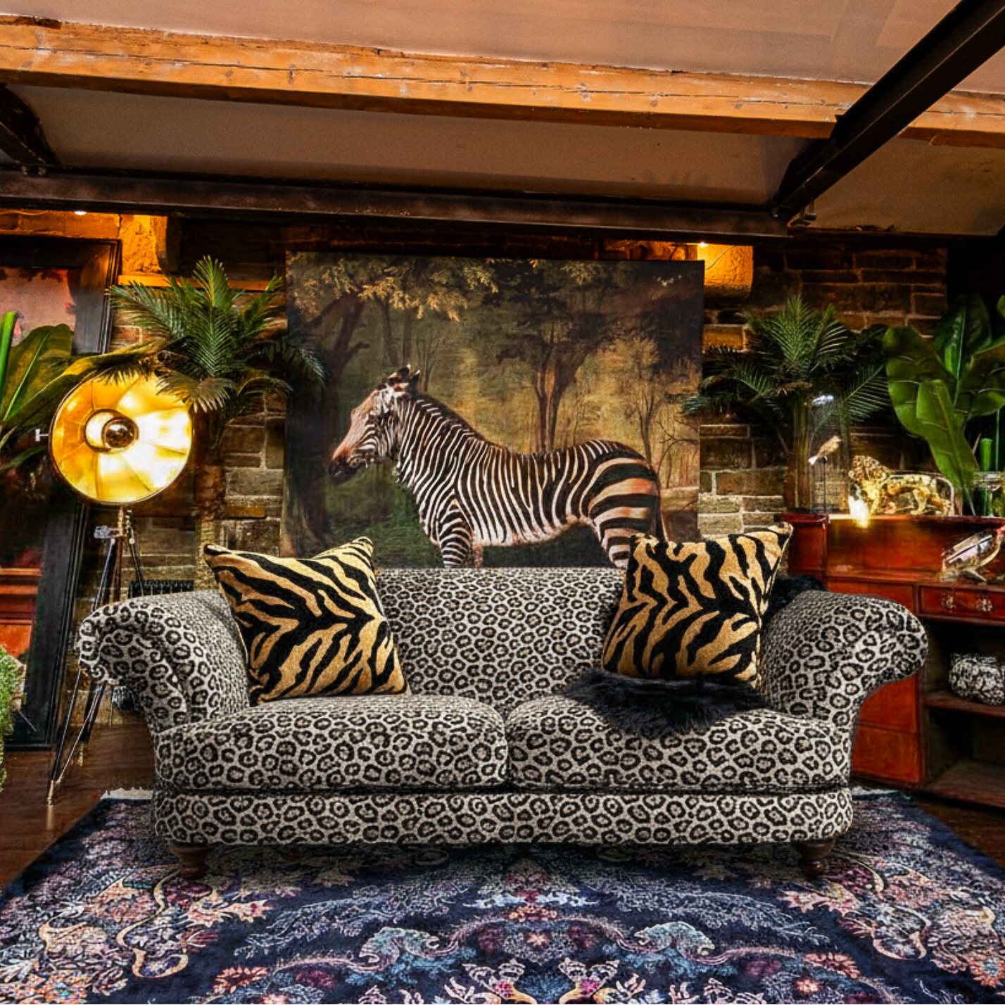 Upholstered in striking animal-print fabric, available in eye-catching leopard or zebra options with both gold and cream tones - this sofa instantly becomes a statement piece in any living space. The versatile Oliver silhouette blends classic design with modern flair, making it equally at home in eclectic, contemporary, or more traditional interiors.