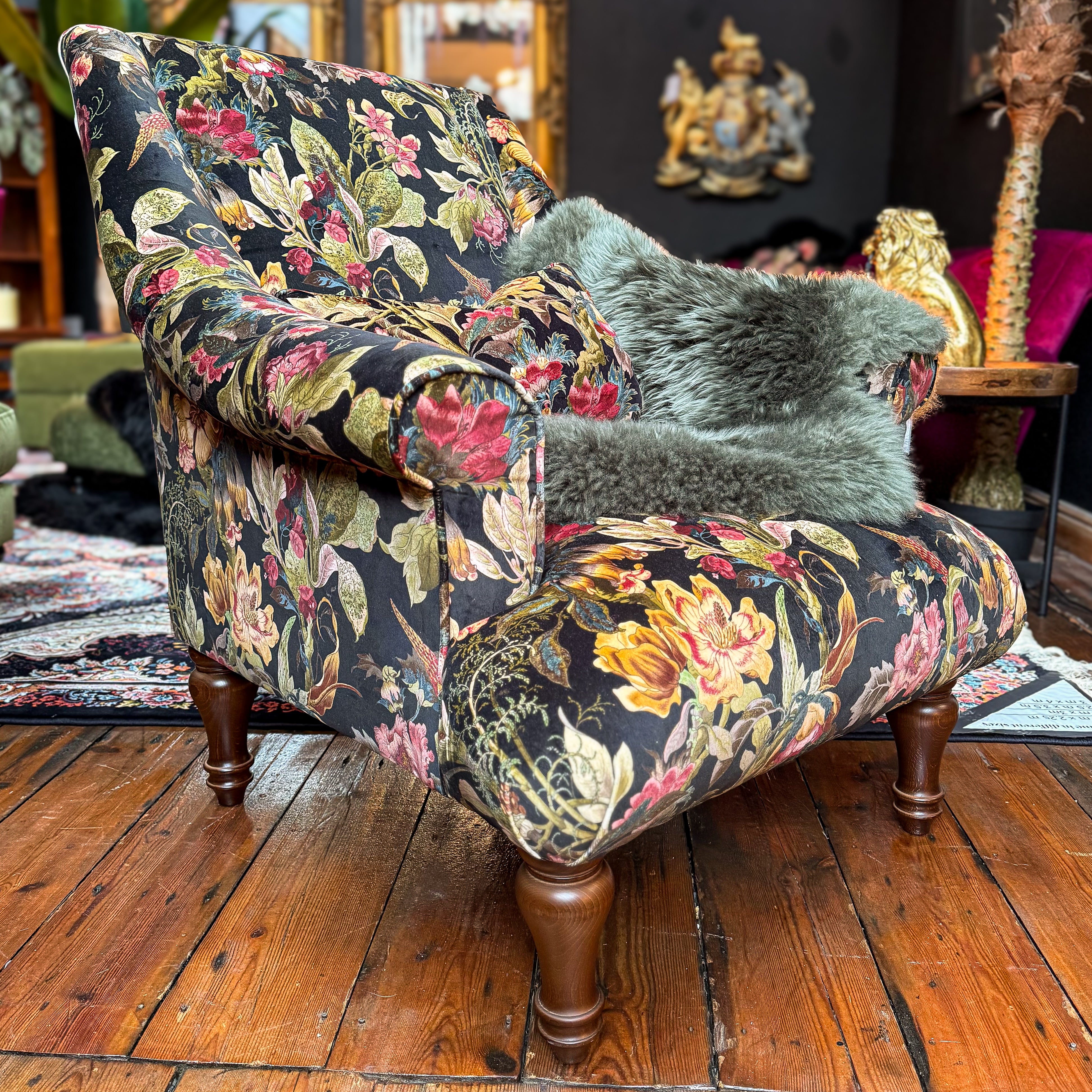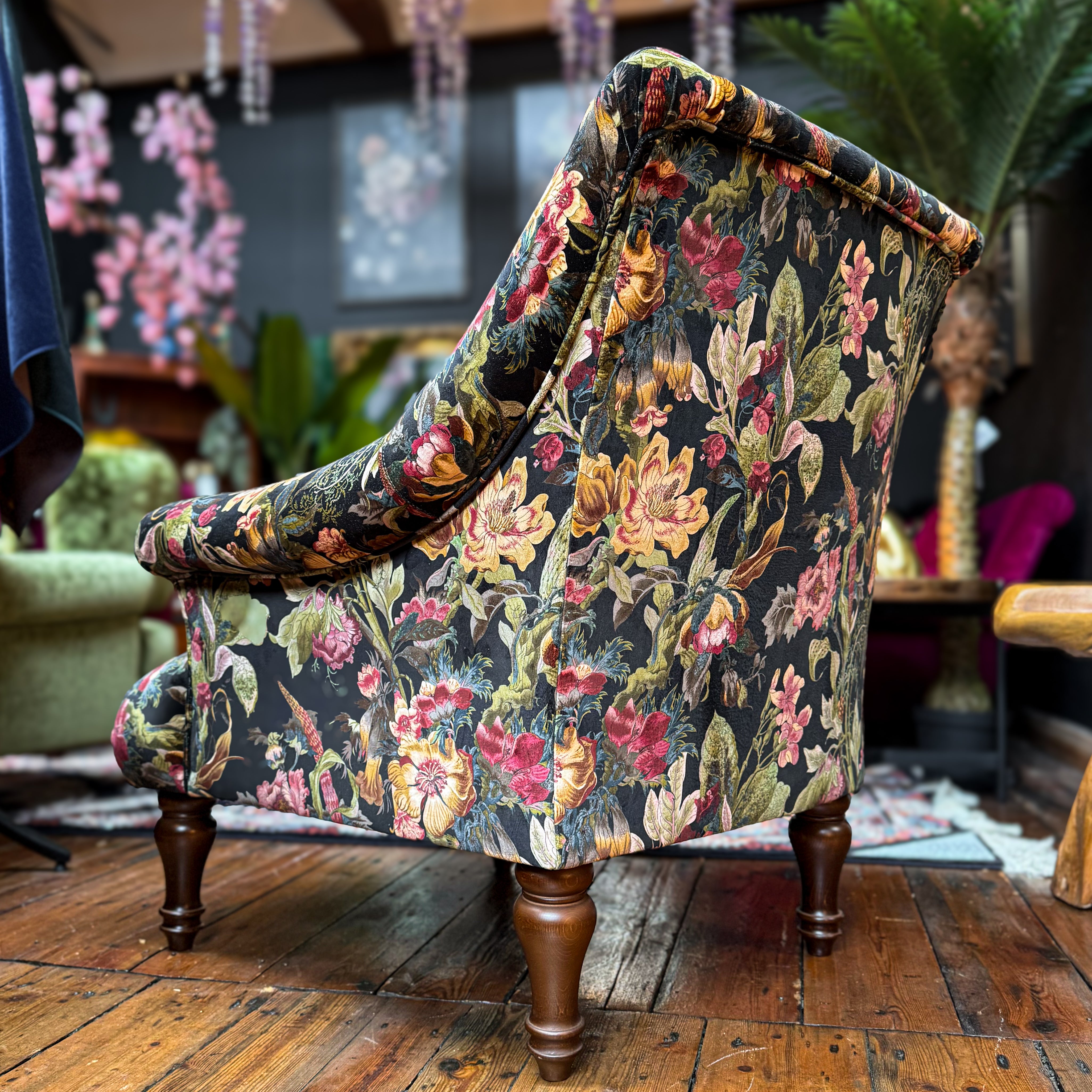Discover the Osborn Armchair in Hepworth Antique Floral, a beautifully crafted statement piece that blends timeless British design with luxurious comfort. Its Victorian-inspired silhouette, elegant scroll arms and rich antique-floral velvet create an instantly eye-catching focal point, perfect for adding depth, colour and personality to any living space.
