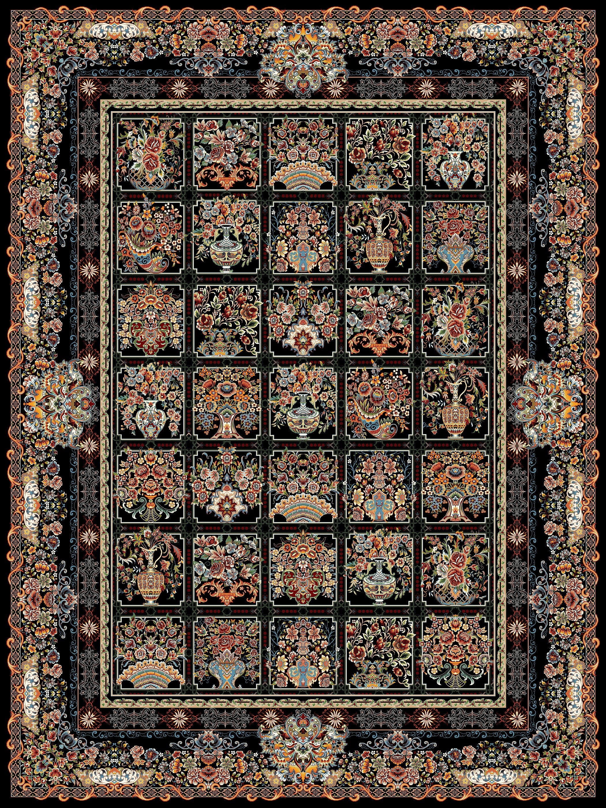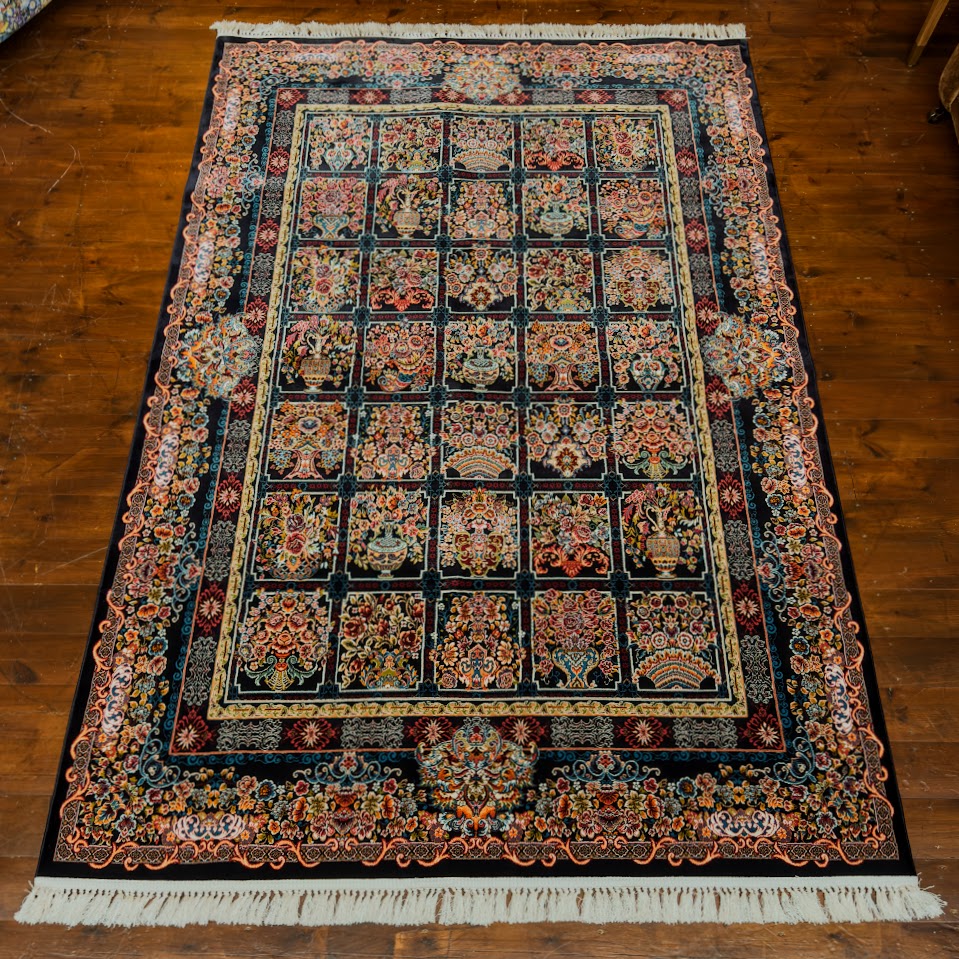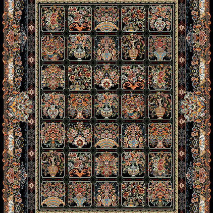 • Intricate Persian-Inspired Design: Features a classic panel layout with floral urns, vases, and decorative motifs for timeless elegance.