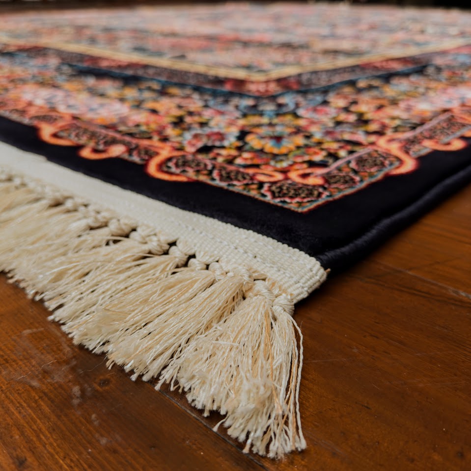 • Ornate Border Detailing: Finished with an elaborate floral frame and fringed edges for a polished, traditional look.