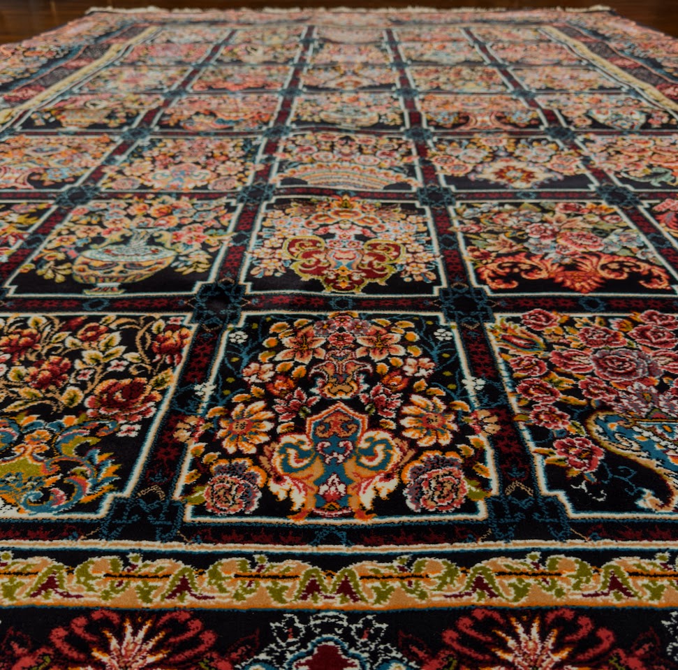 Elevate your home with timeless opulence and intricate design through the Floral Infinity Rug, a show-stopping piece that brings traditional Persian artistry into modern living. Featuring a classic panel layout filled with floral urns, ornate vases, and arabesque motifs, this rug is a celebration of symmetry, colour, and craftsmanship.