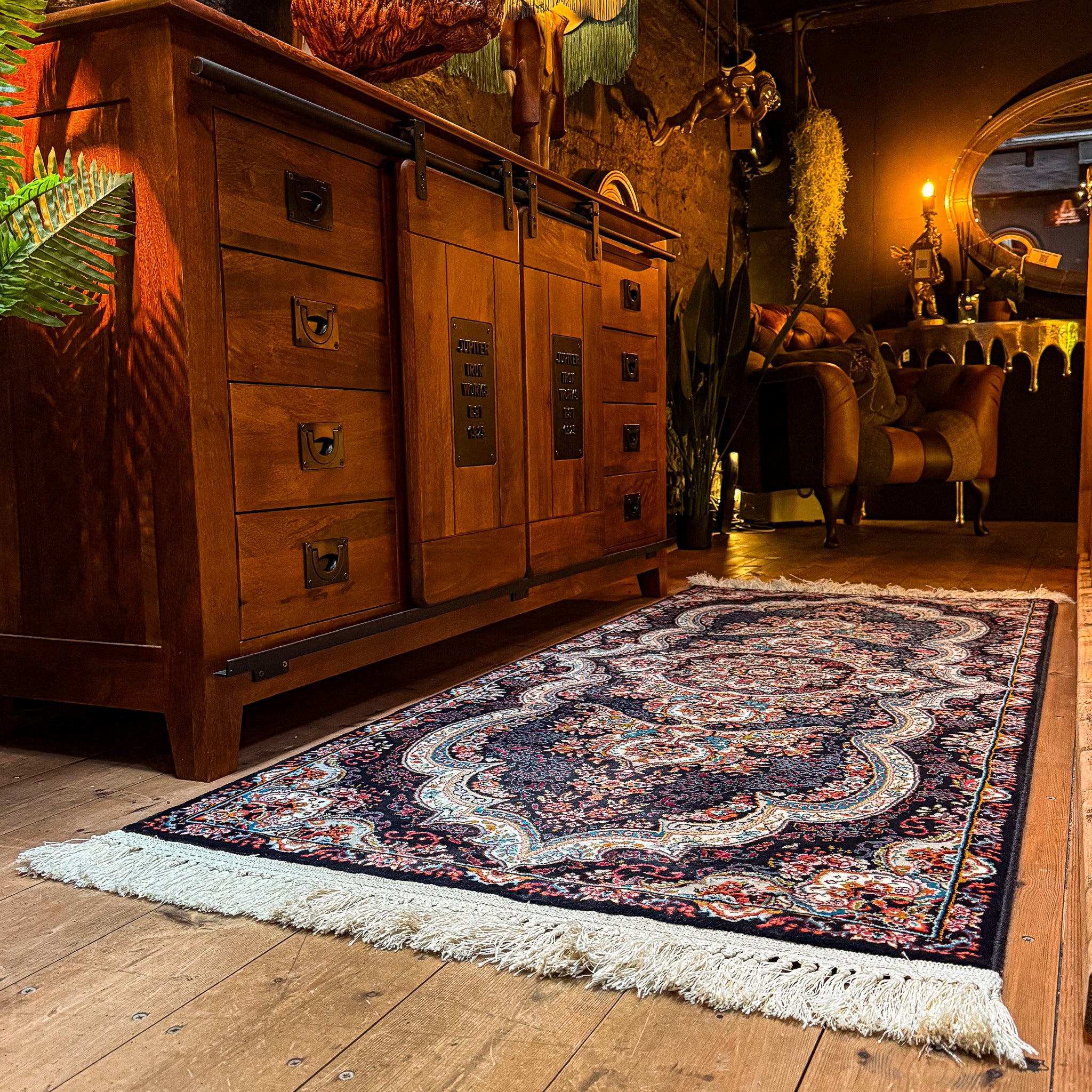 By the light of the moon the pixies danced; our Apollo rug is dramatic with vibrant colours - all balanced to great effect. The decorative concentric pattern draws the eye across the ornate design to the central medallion, making it a fabulous focal point for any room. Inspired by traditional Heriz design.