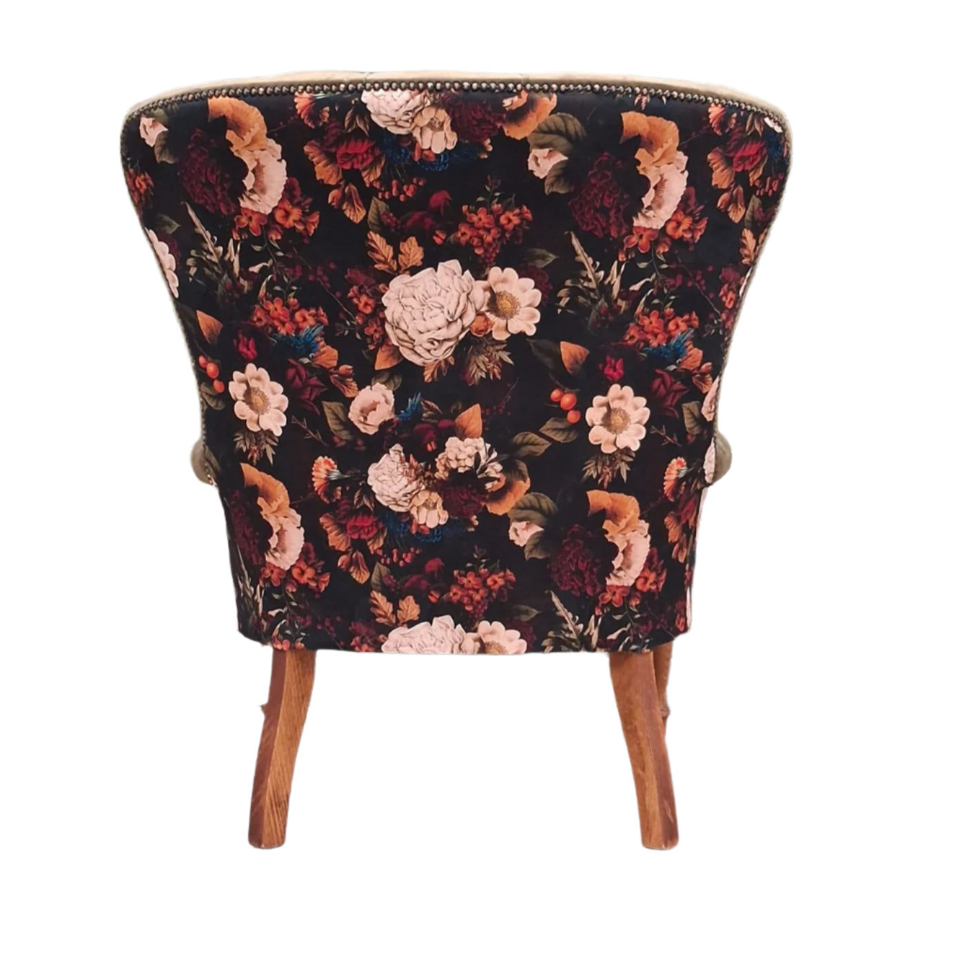 The generous deep buttoned curved back makes for the perfect seat, gently encasing you as you sit, offering support to the neck, back and shoulders.