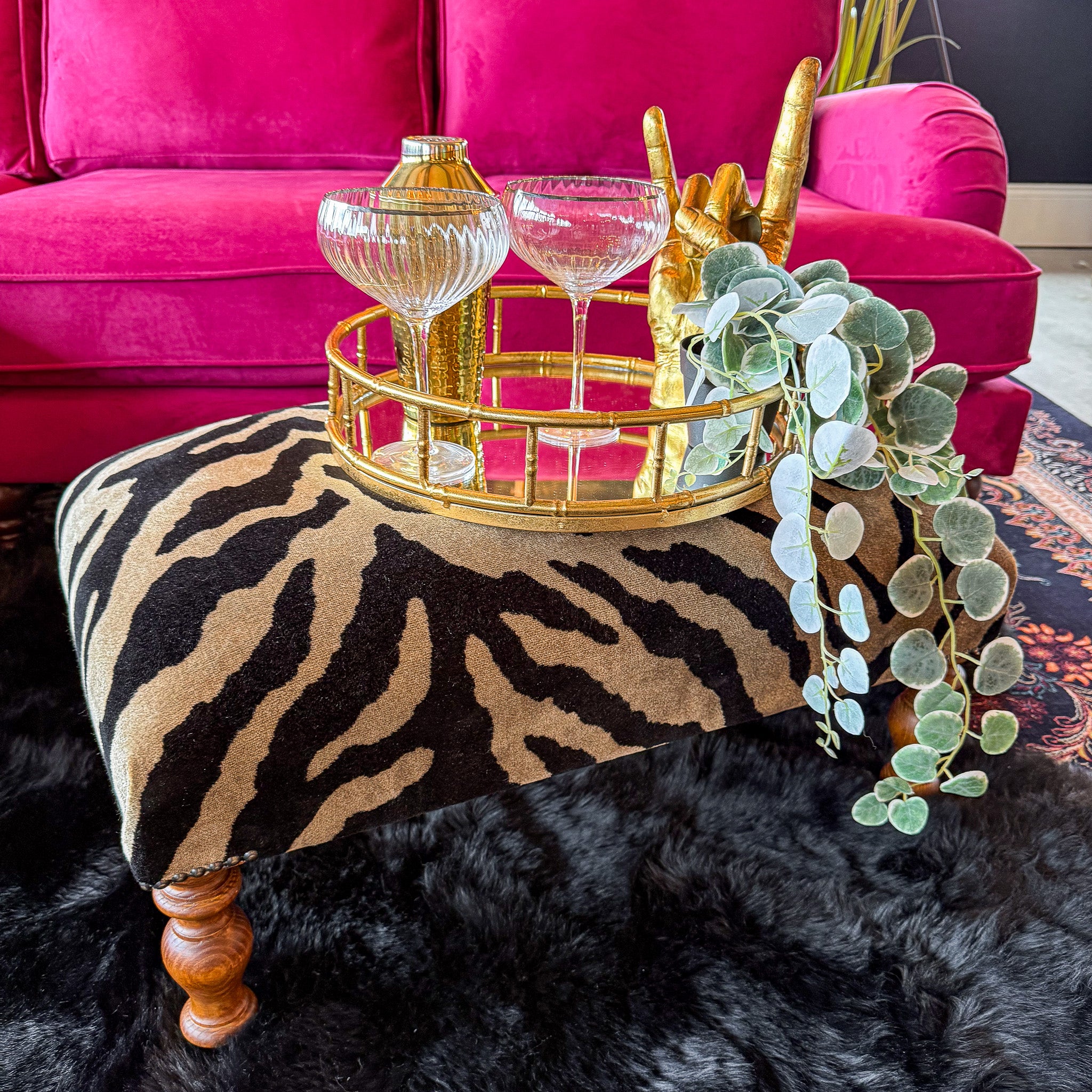 Selfridges Footstool in Zebra Cream