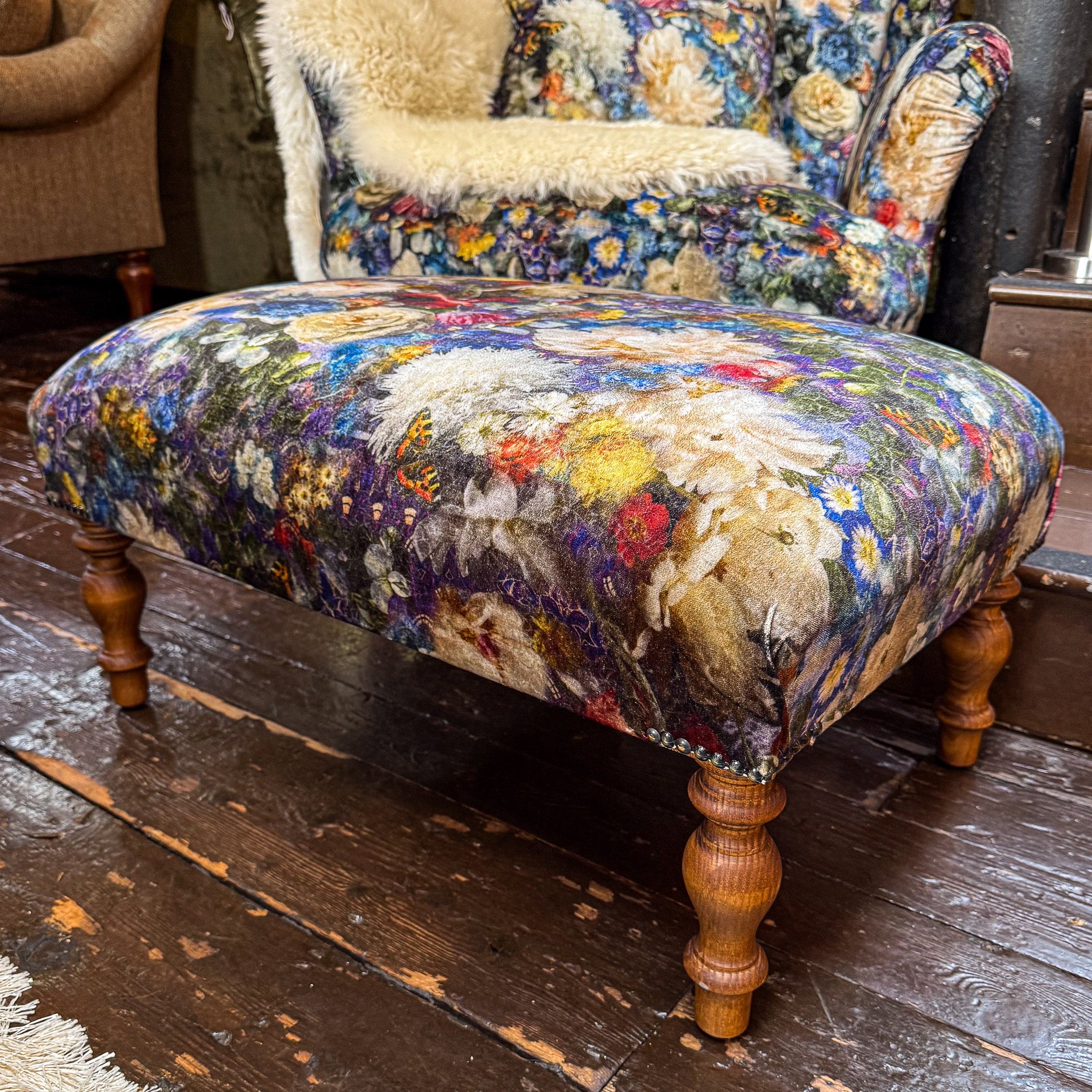 Selfridges Small Footstool in GP & J Baker Royal Garden Sapphire - New