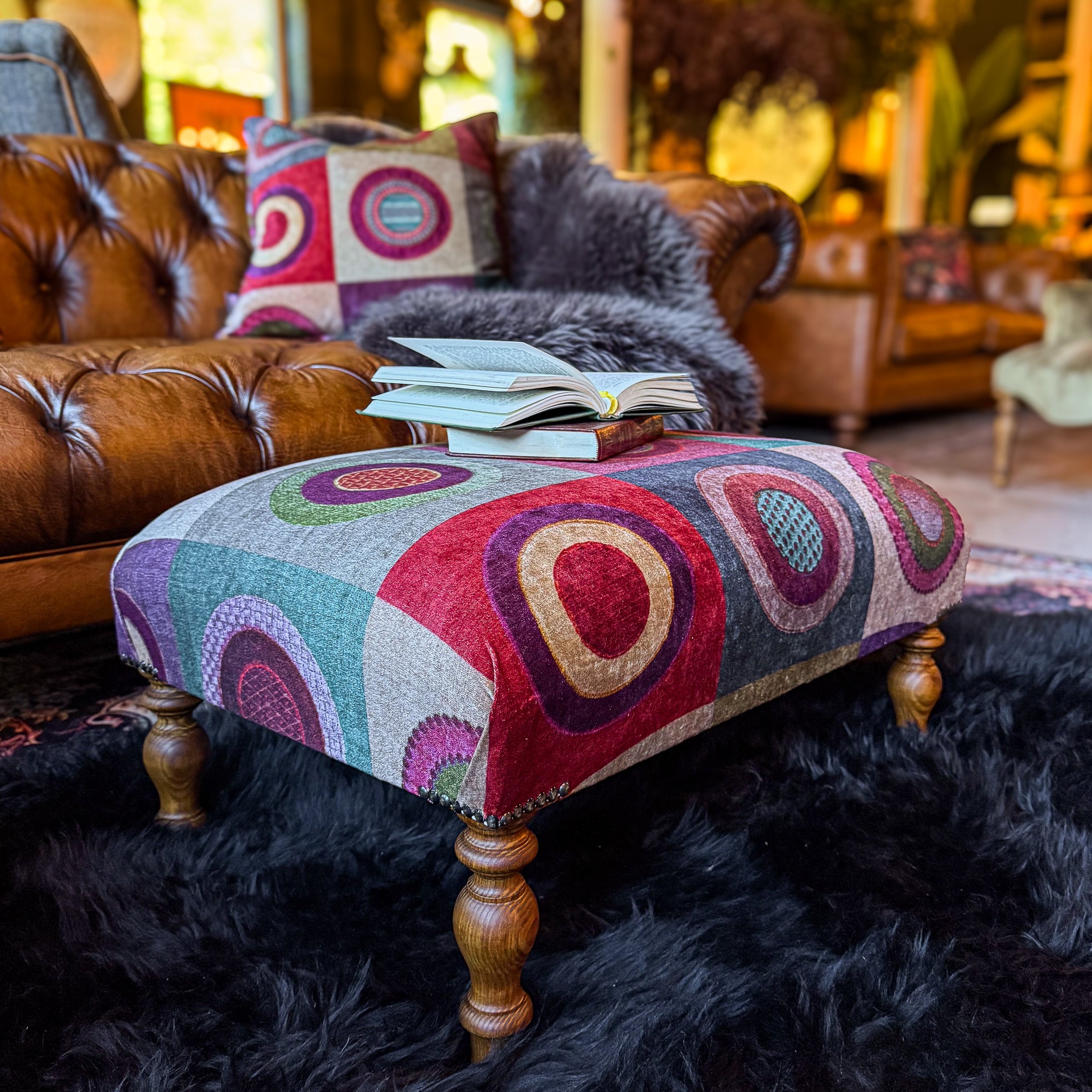 Made using renowned British fabric designer Mulberry fabrics supplied by GP & Jay Baker.  The footstool is expertly crafted from the sumptuous velvet, composed of an indulgent cotton and viscose velvet mix for indulgent softness with standout style.