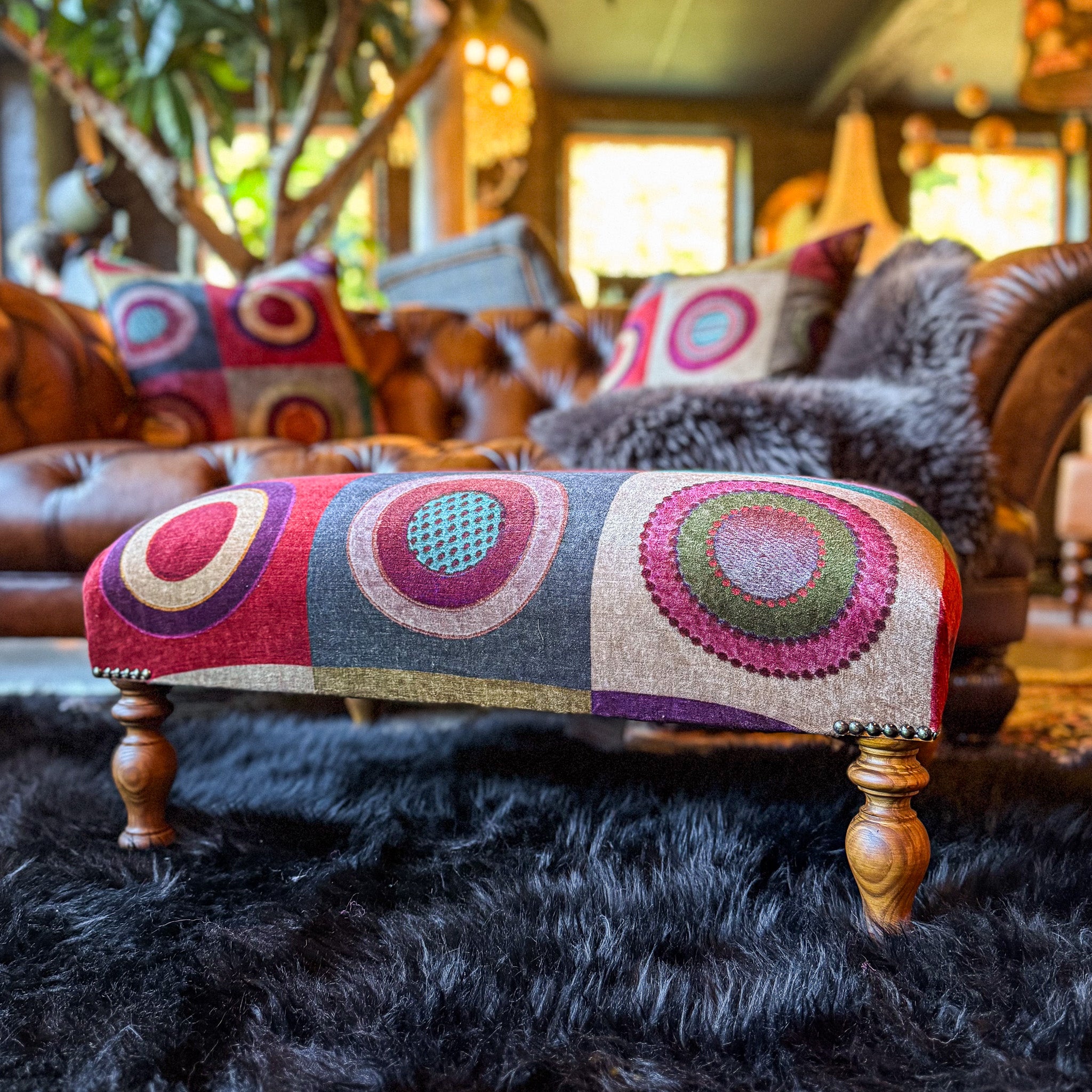 Measurements: 70cm W, 45cm D, 35cm H. Made using renowned British fabric designer Mulberry fabrics supplied by GP & Jay...