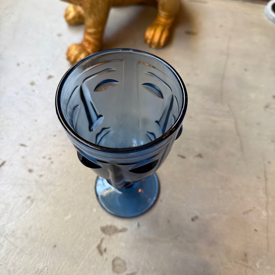 Set of 6 Blue Deco Face Wine Glasses