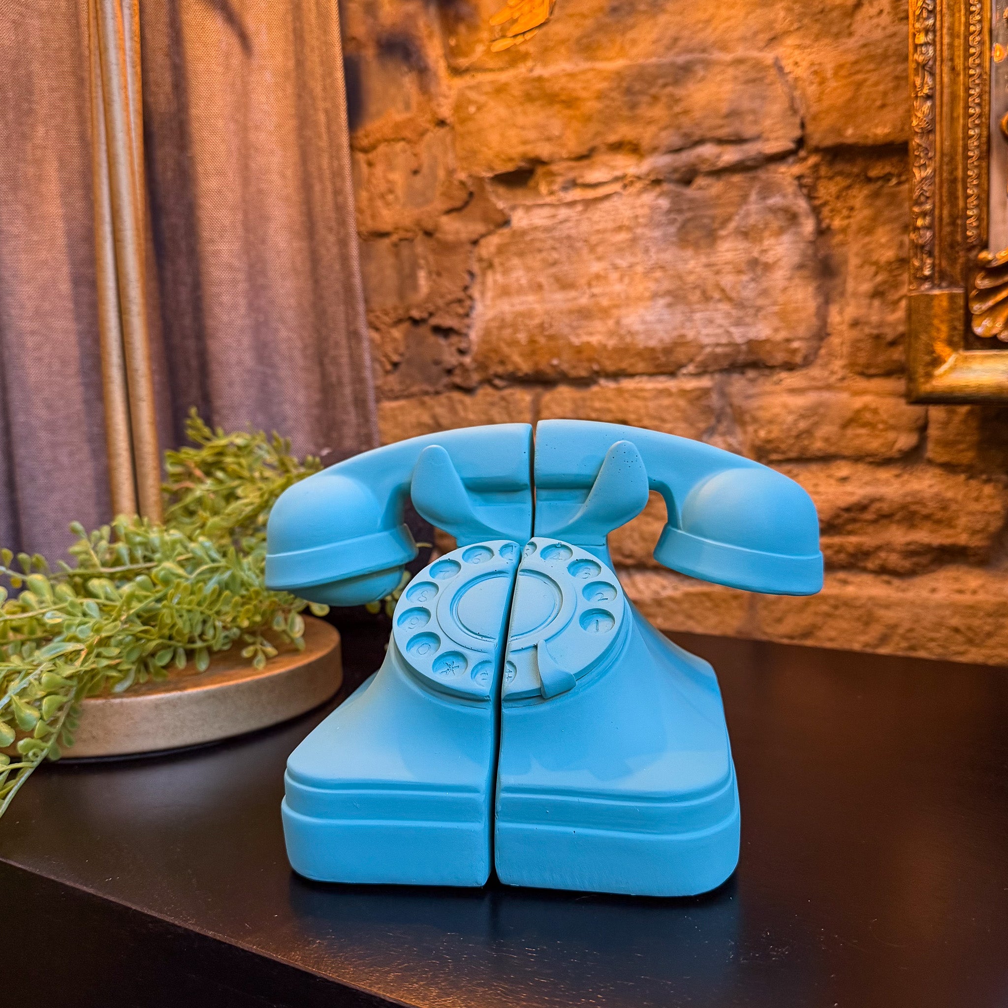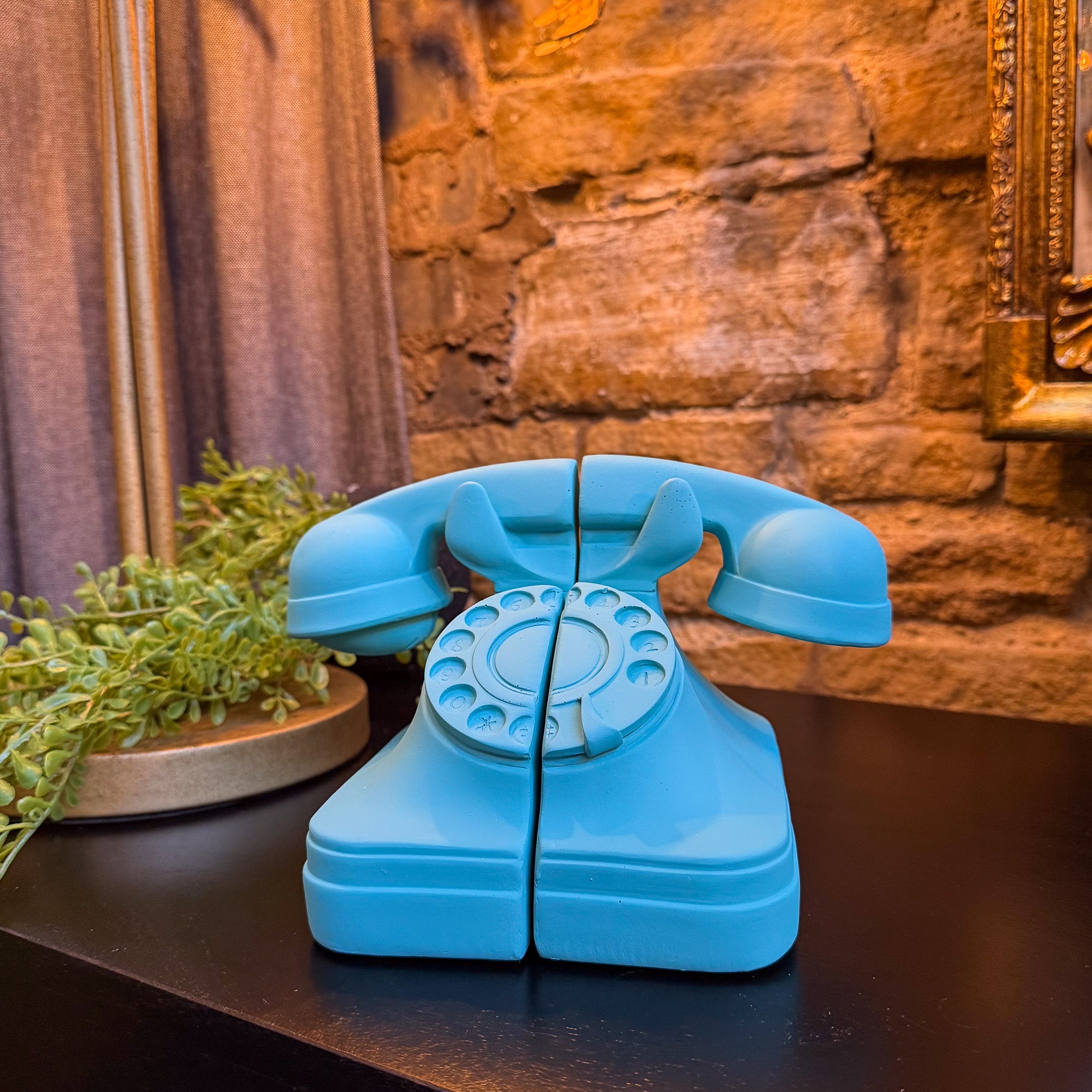Set of Telephone Bookends in Matt Aqua Blue
