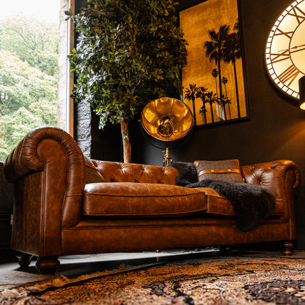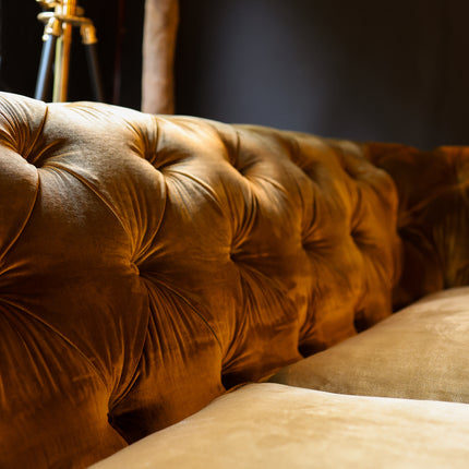 Introducing the Stanley, our luxurious grand Chesterfield designed for comfort. Its deep with extra large scrolled arms and beautiful heritage features, finished with a naturally curved back. Built with a solid timber frame and high quality soft reflex foam & fibre wrap seat cushions, it provides both exceptional comfort and support.
