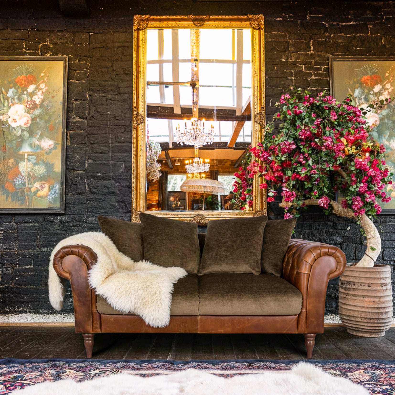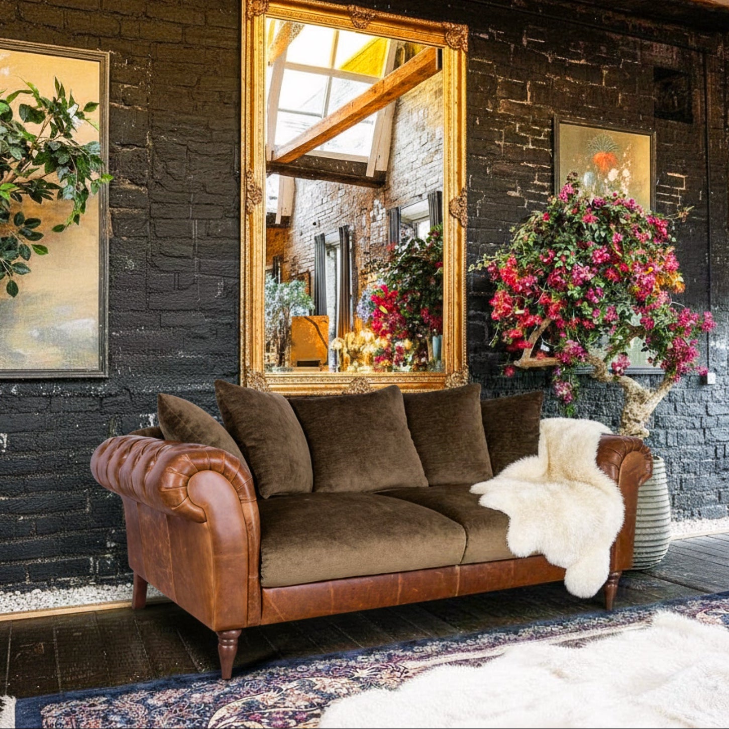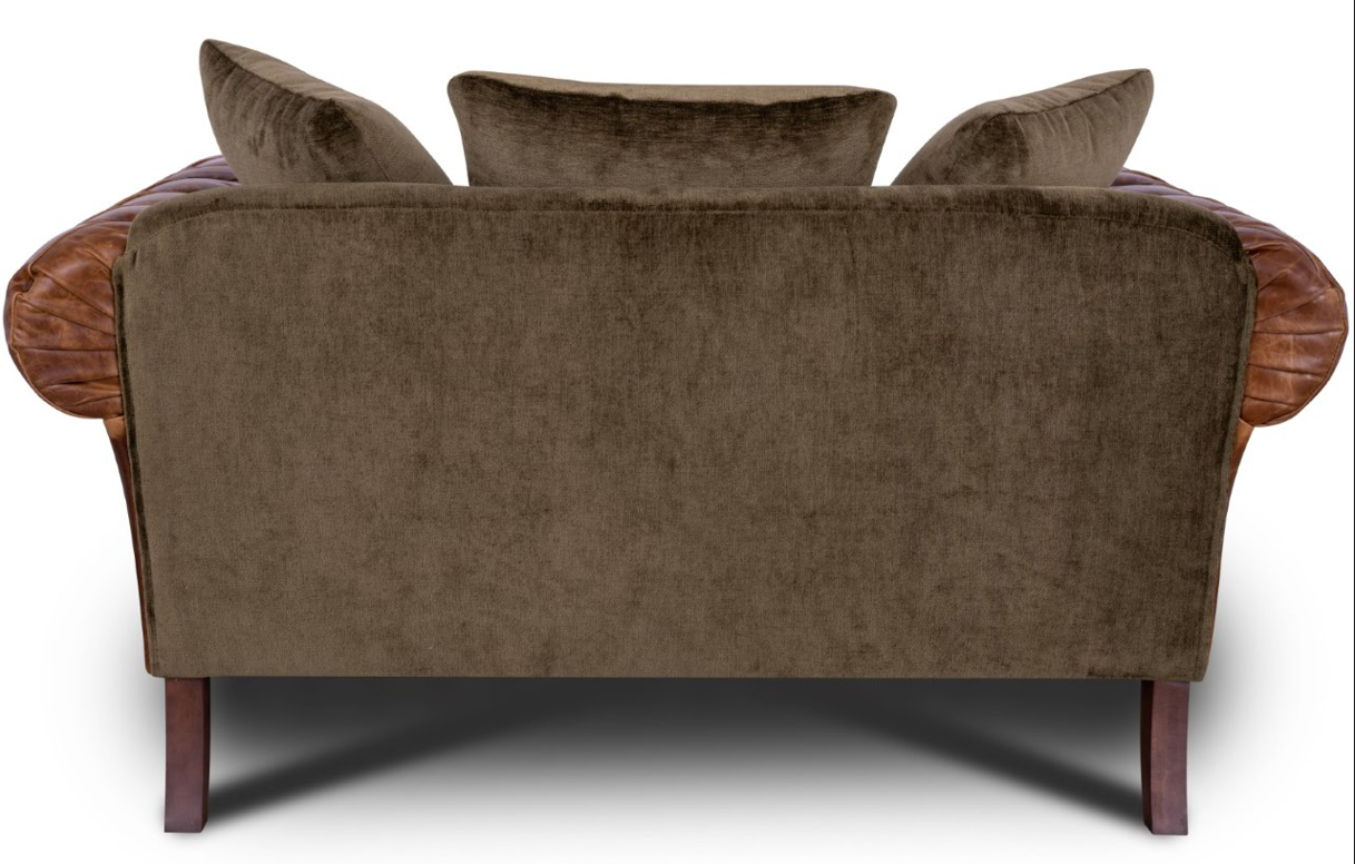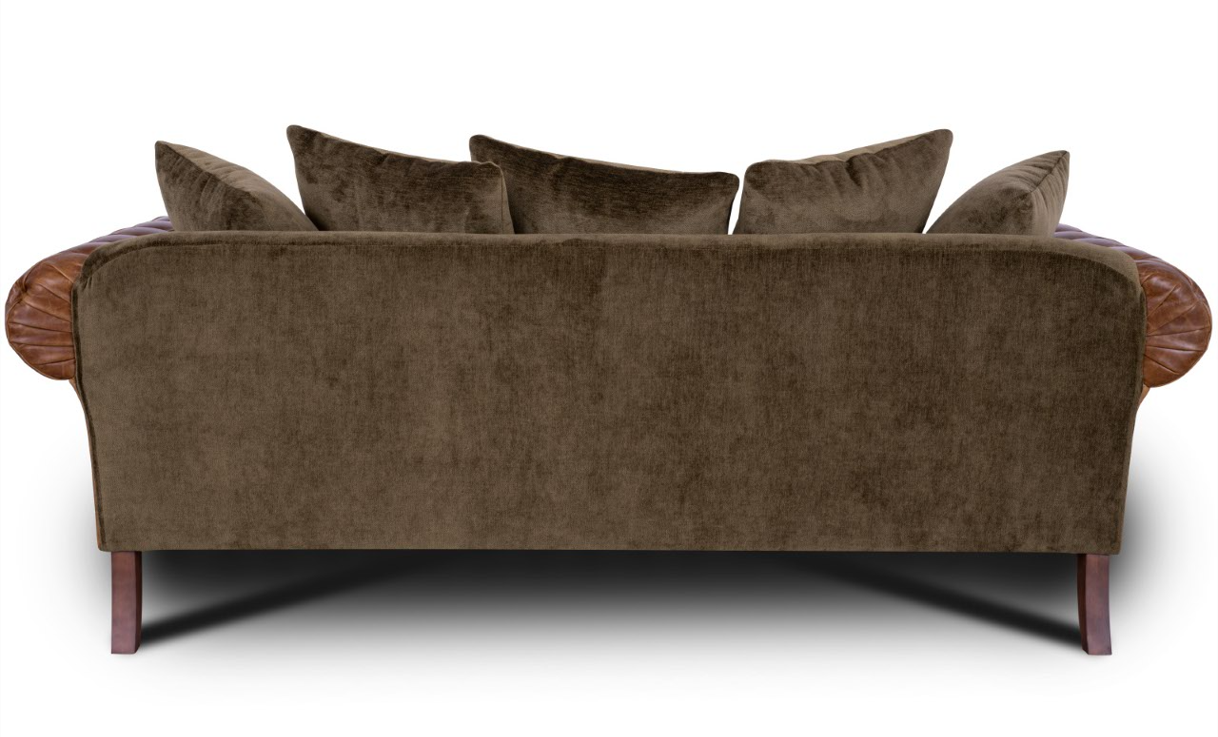 The Theodore combines rich velvet and natural leather, creating that perfect mix of texture and comfort. Each cushion is feather-filled, so it’s as soft and sink-in comfy as it looks.