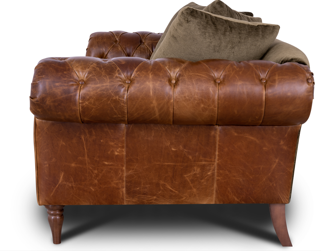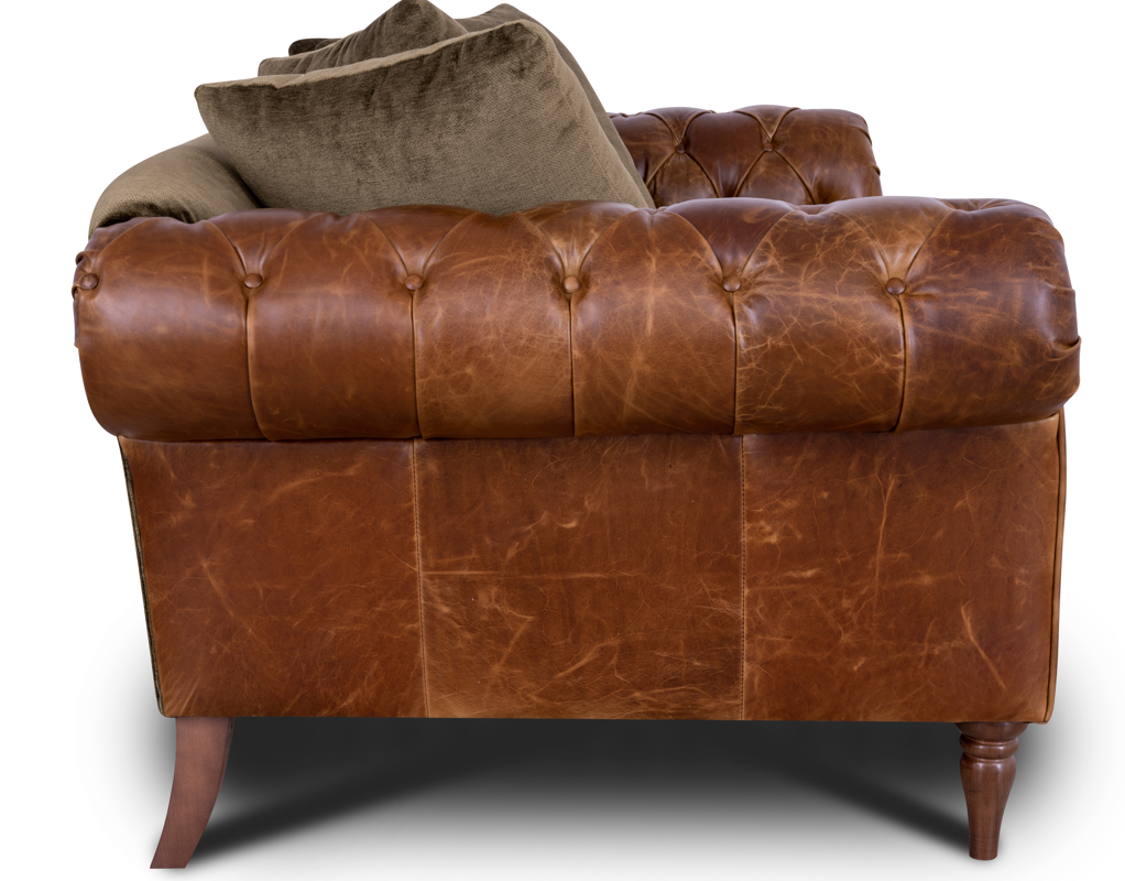 Available as a loveseat, 2-seater, 3-seater, and 4-seater. The elegant design is anchored by its iconic curved, deep buttoned arms, a classic Chesterfield-inspired detail that adds both sophistication and character. These sweeping arms frame the sofa beautifully, enhancing its presence in any interior. The foam pocket sprung seat cushions provide structured support, while the feather and fibre mix ensures a soft, inviting sit that holds its shape over time.